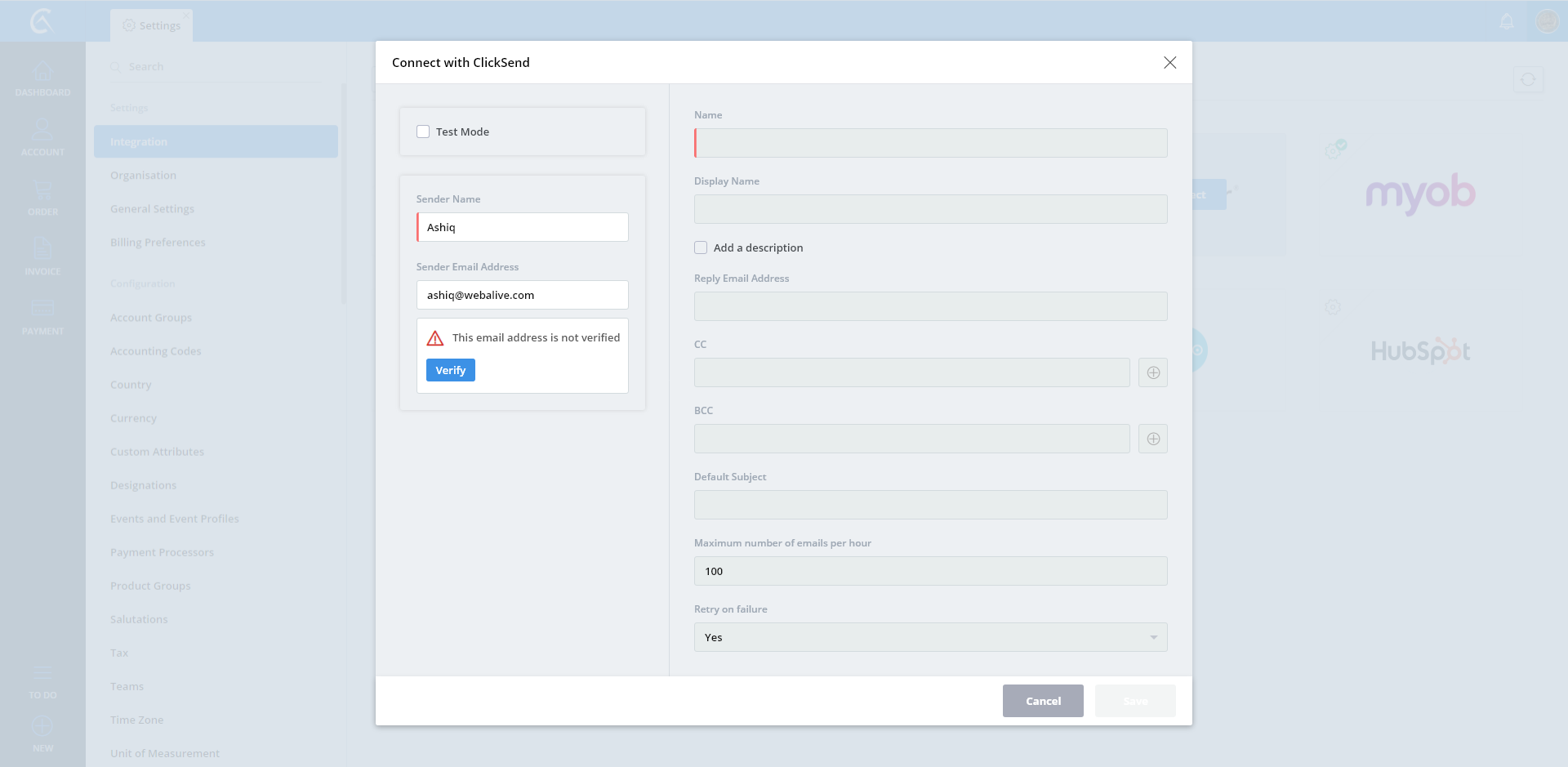 ClickSend_Connected_Email_Not_Verified