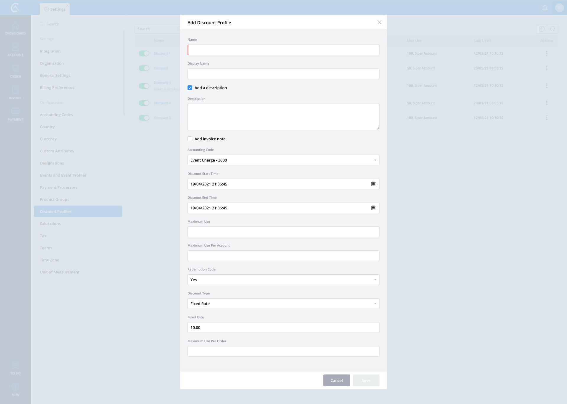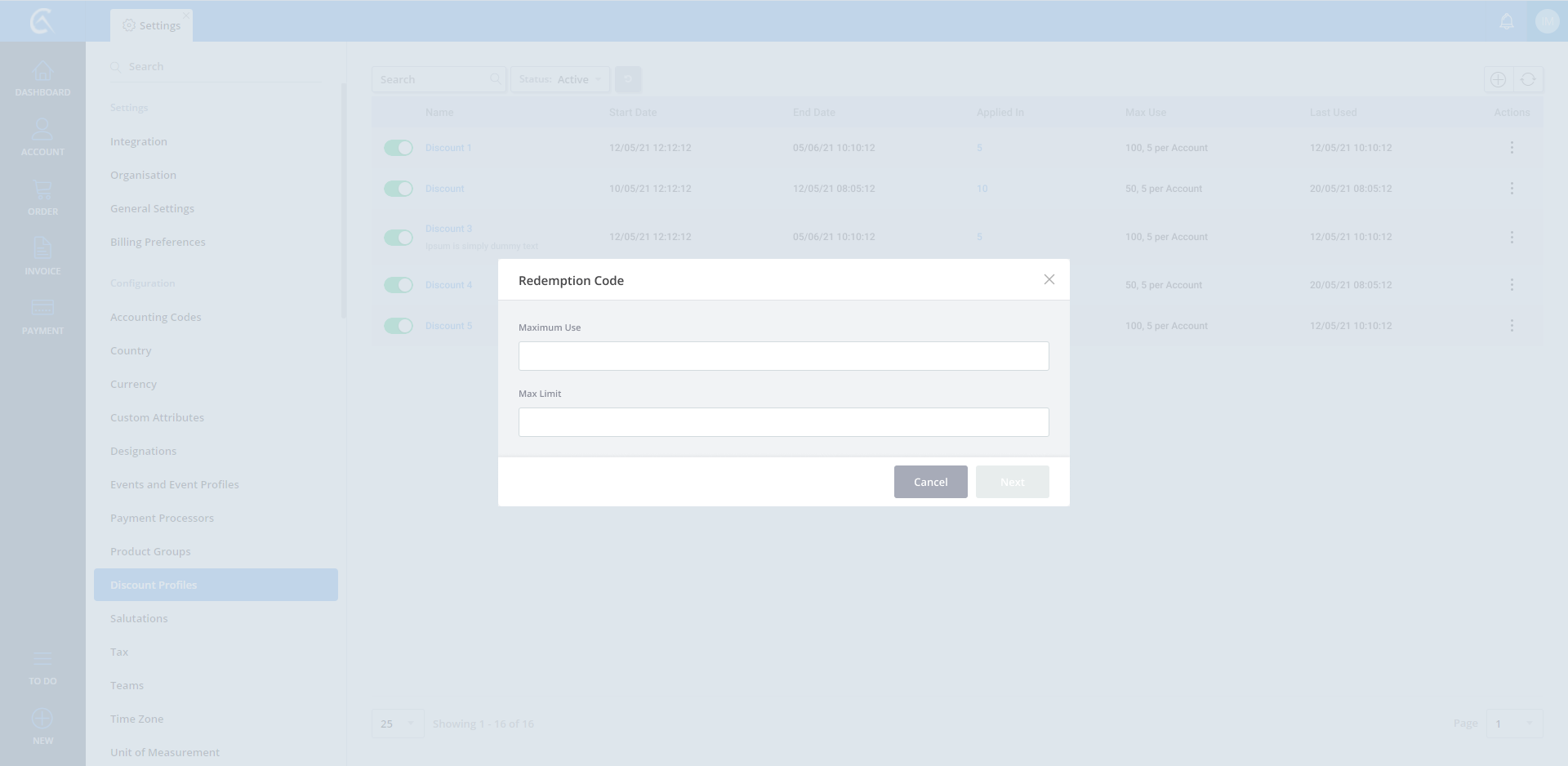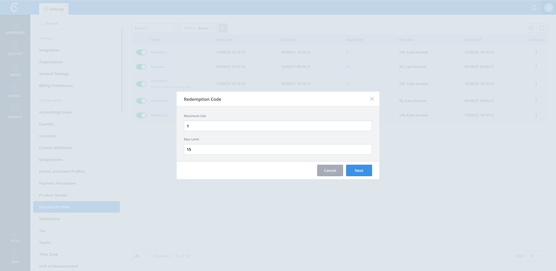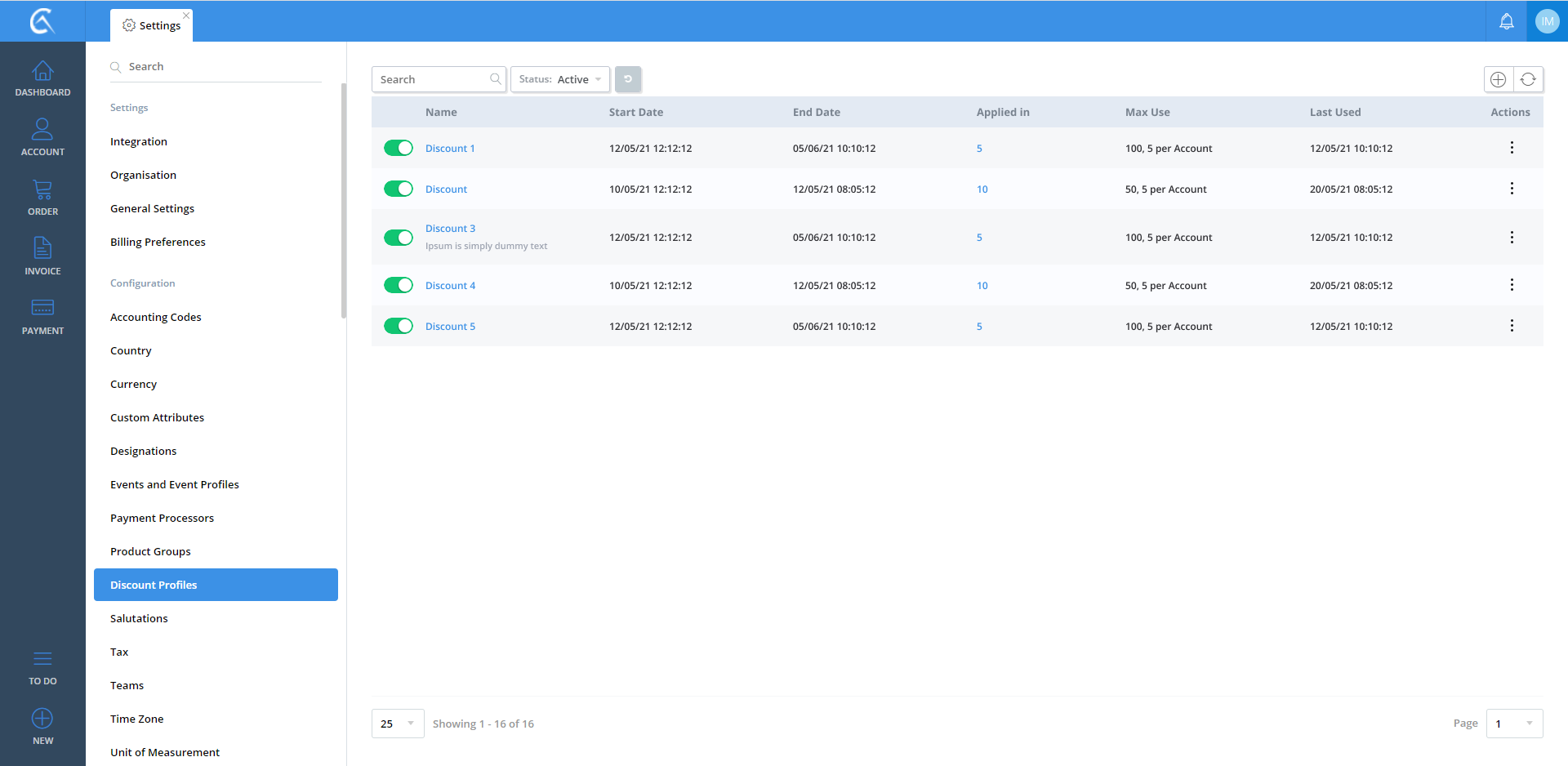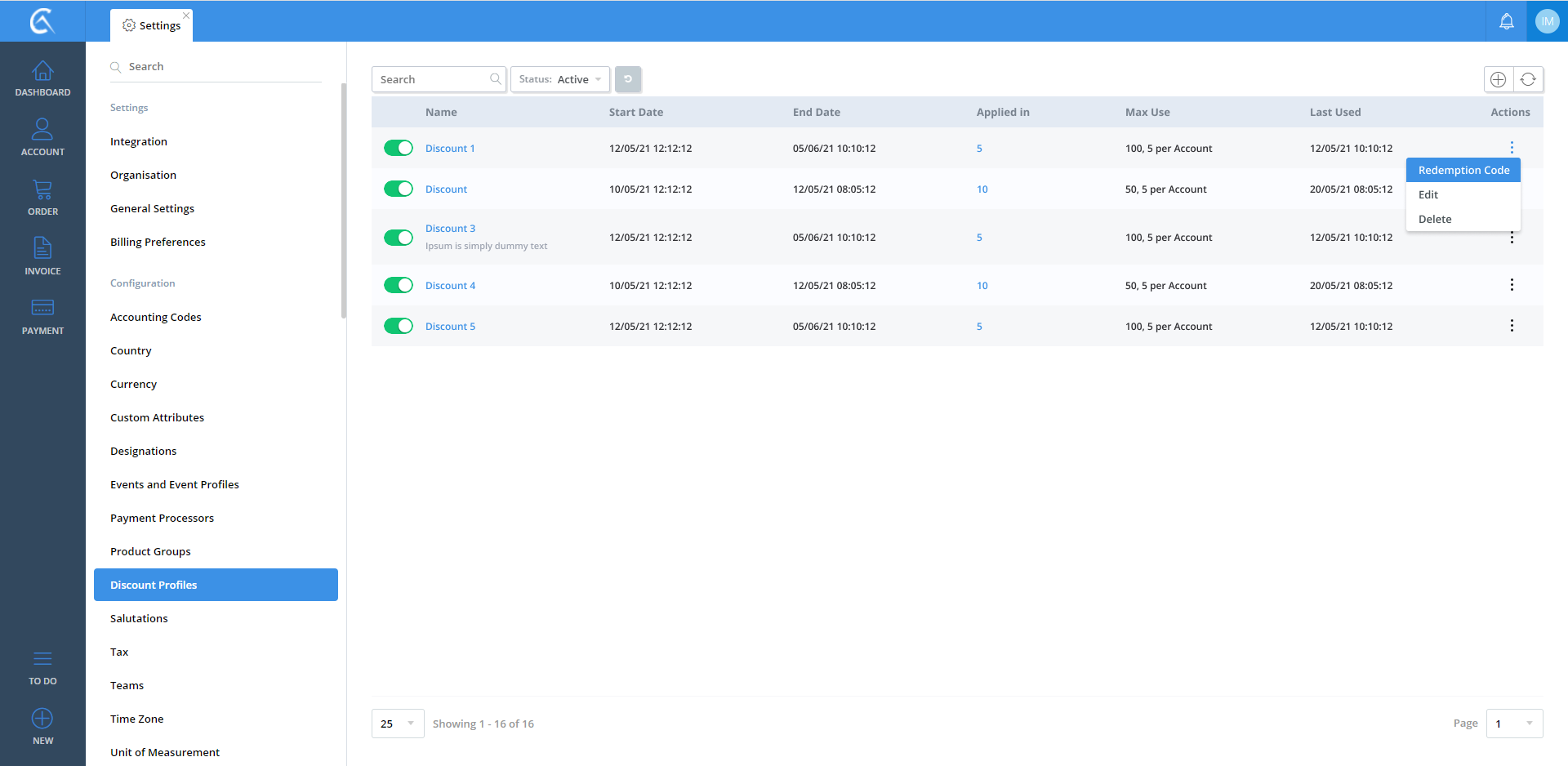 Discount Profile list