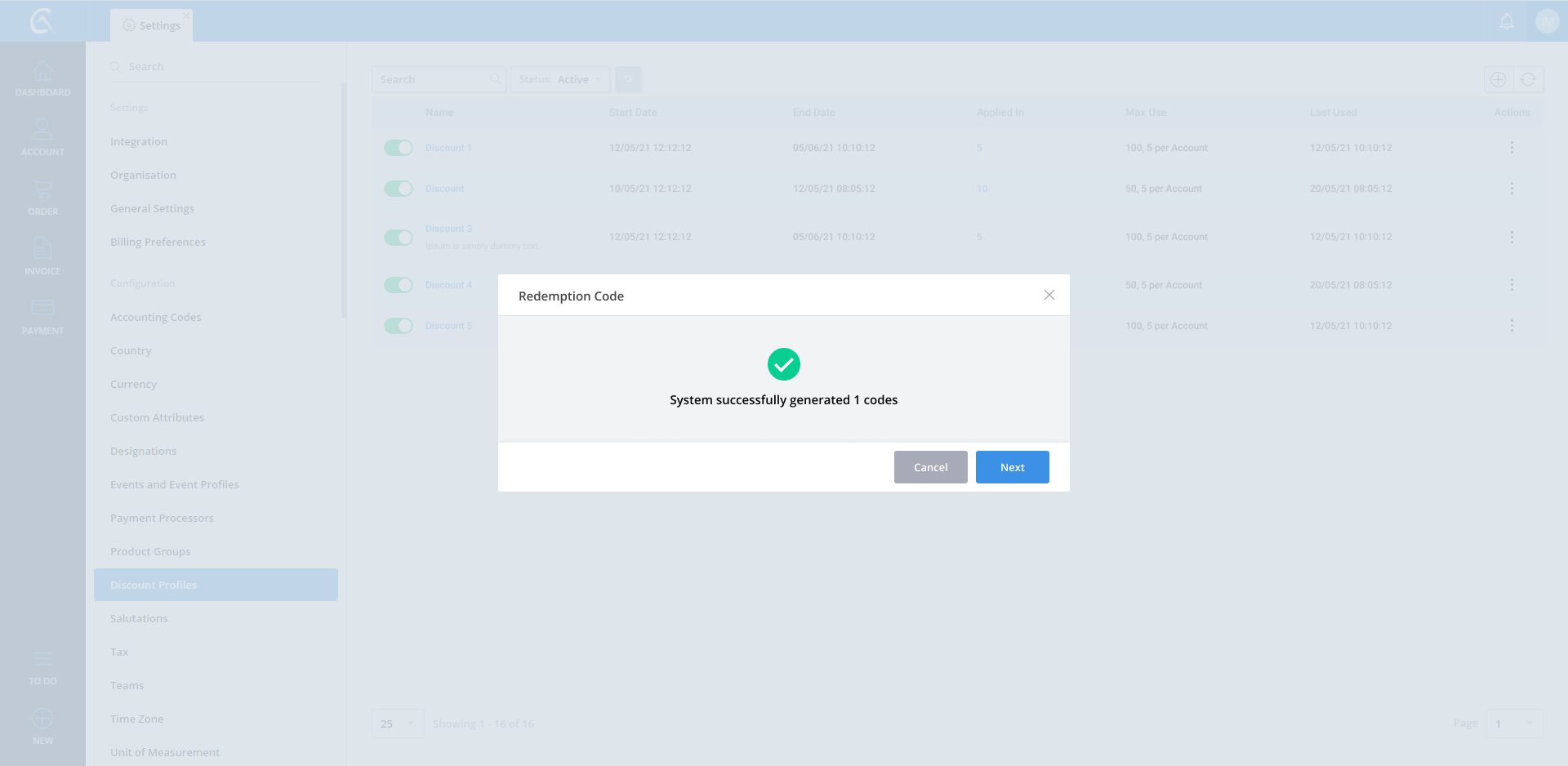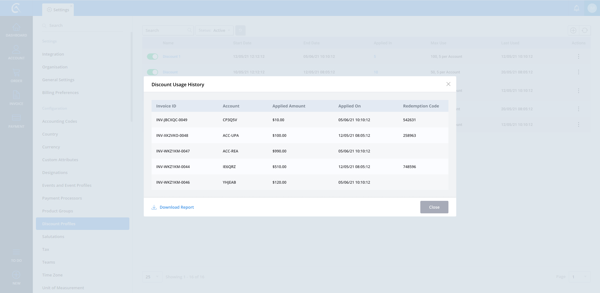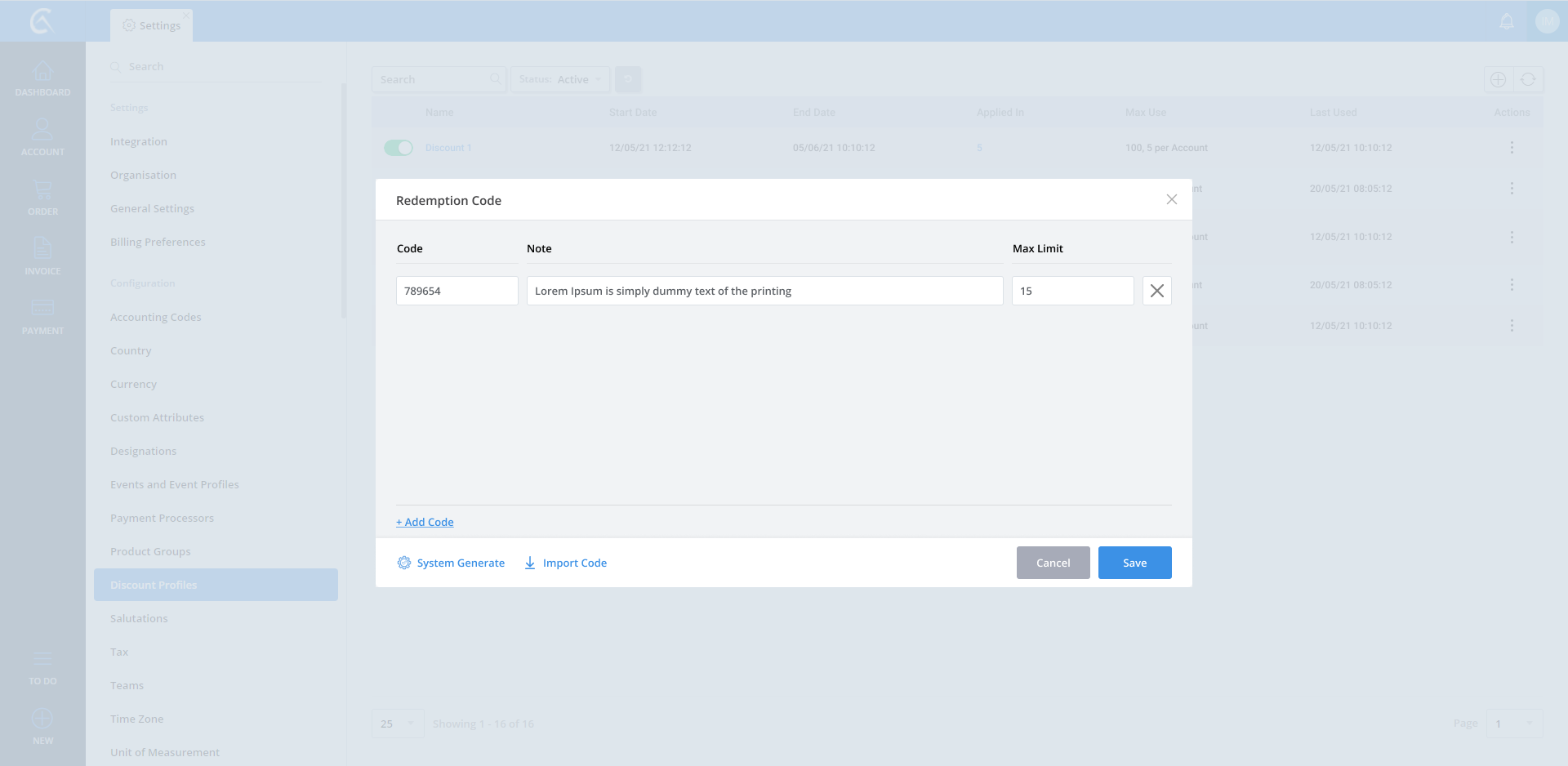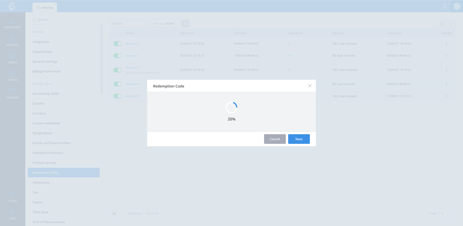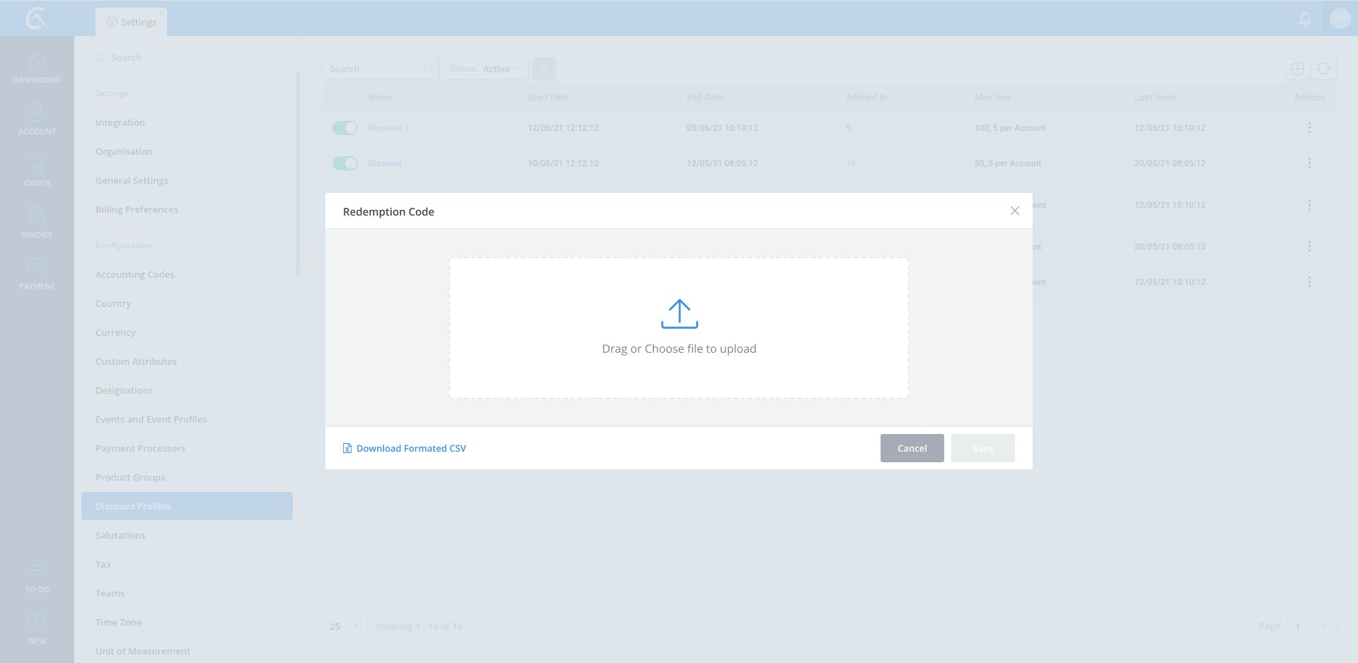 Discount Profile list