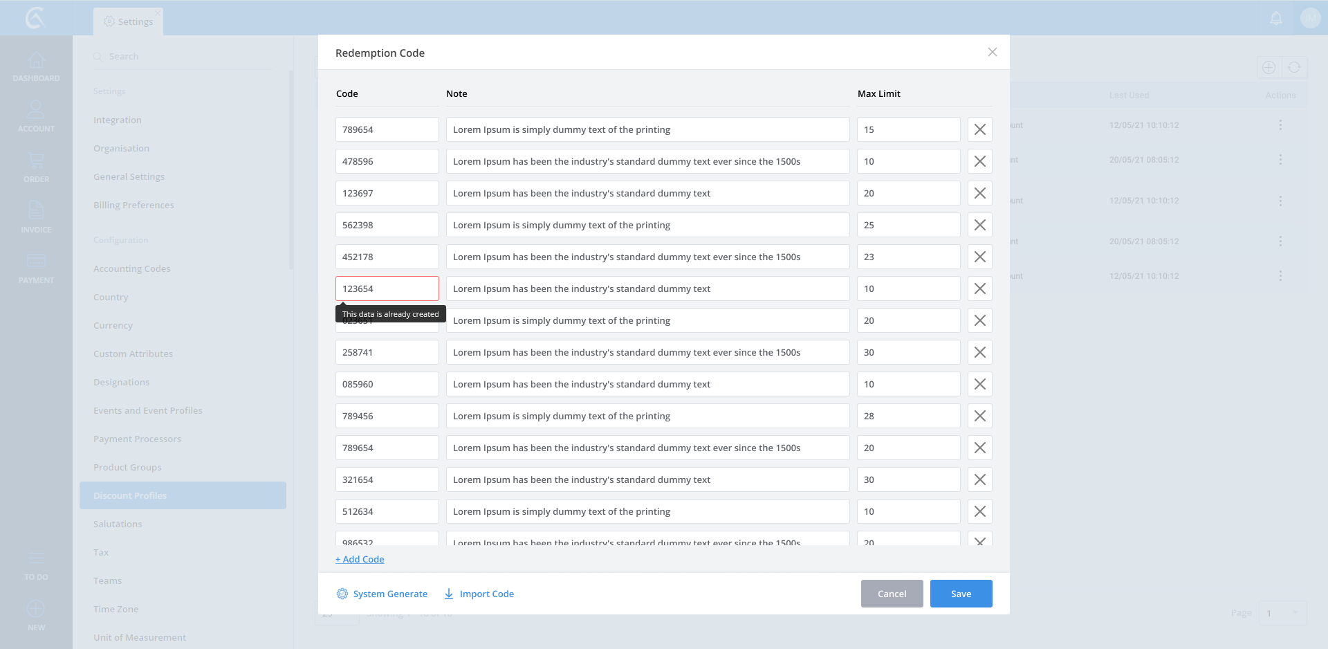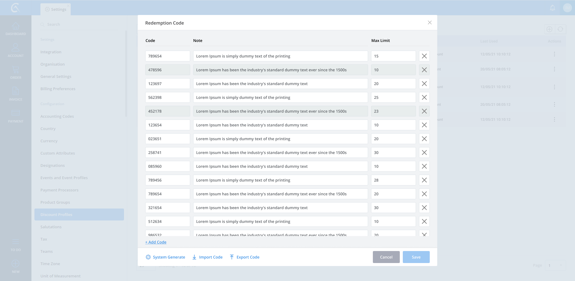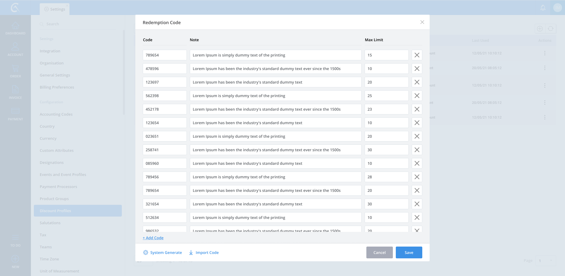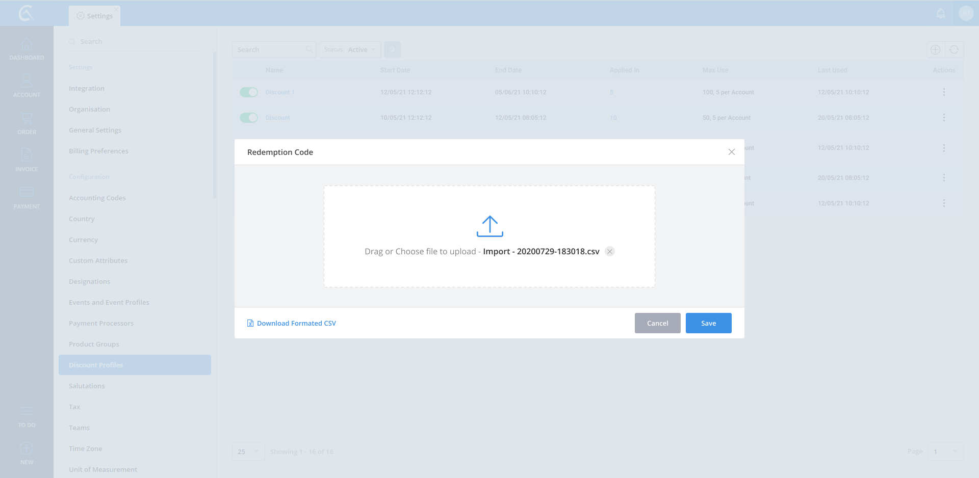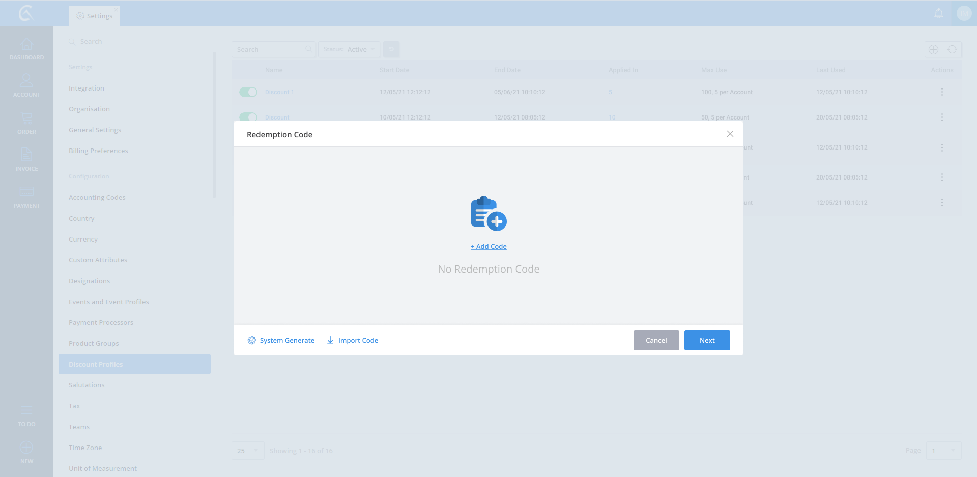 Discount Profile list