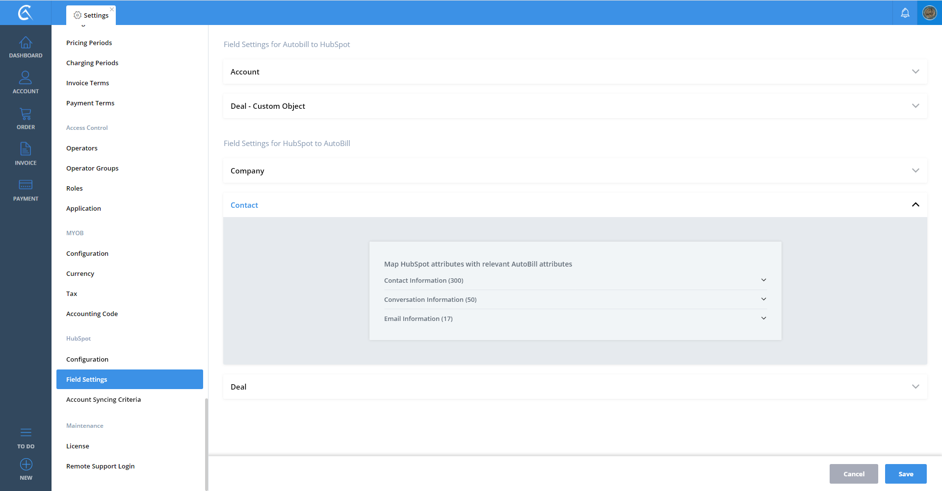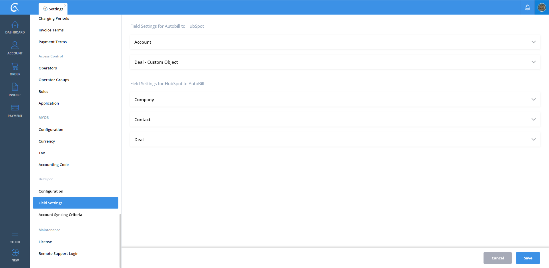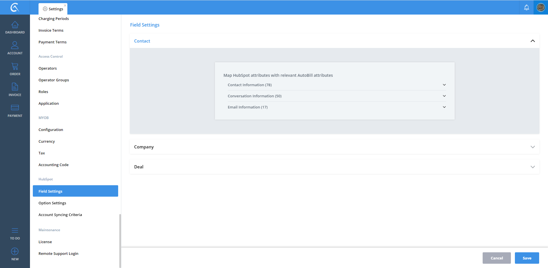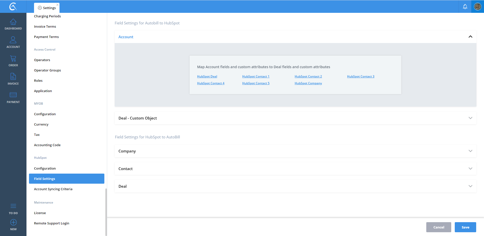 Field Settings AutoBill To Hubspot V3 Step 01