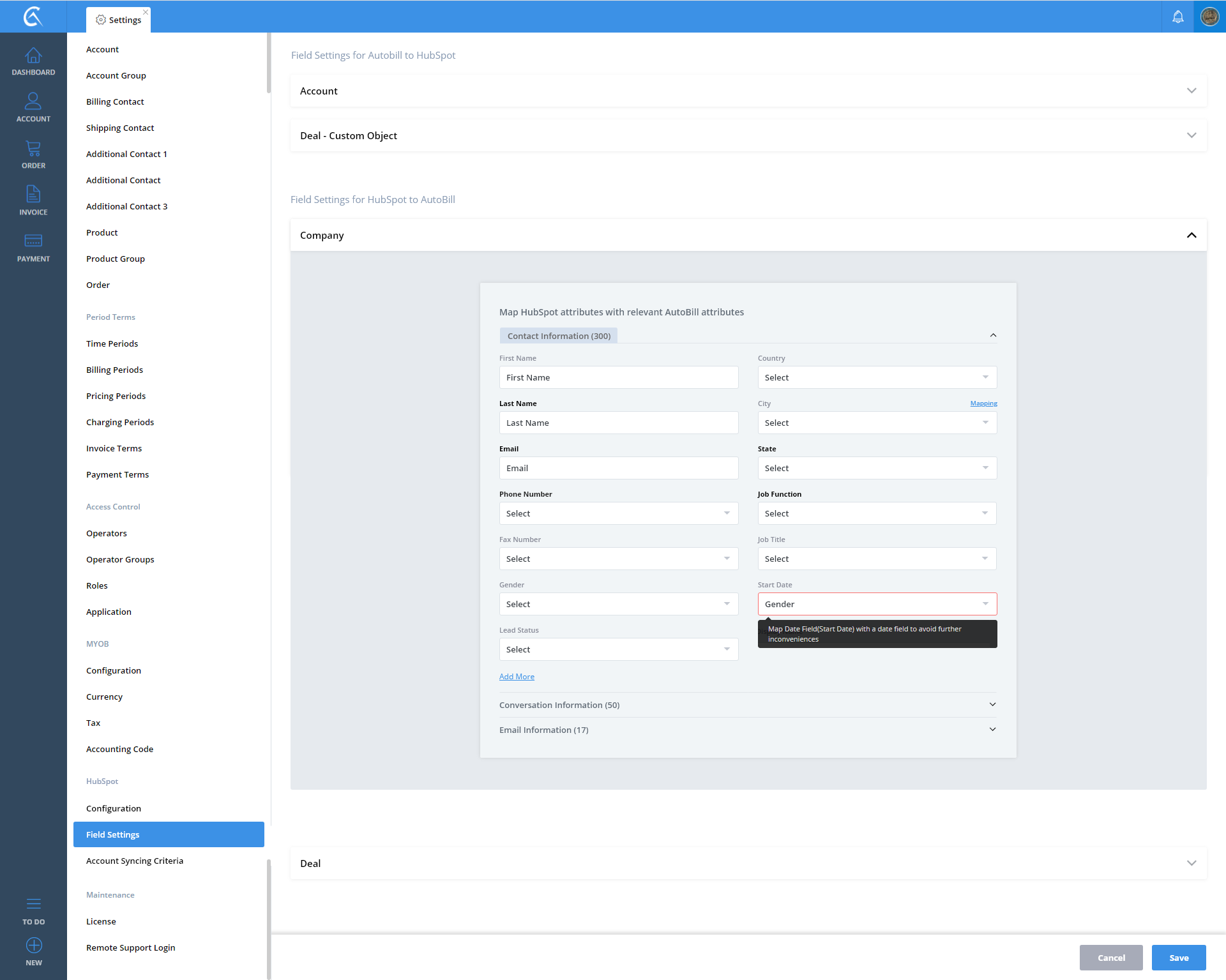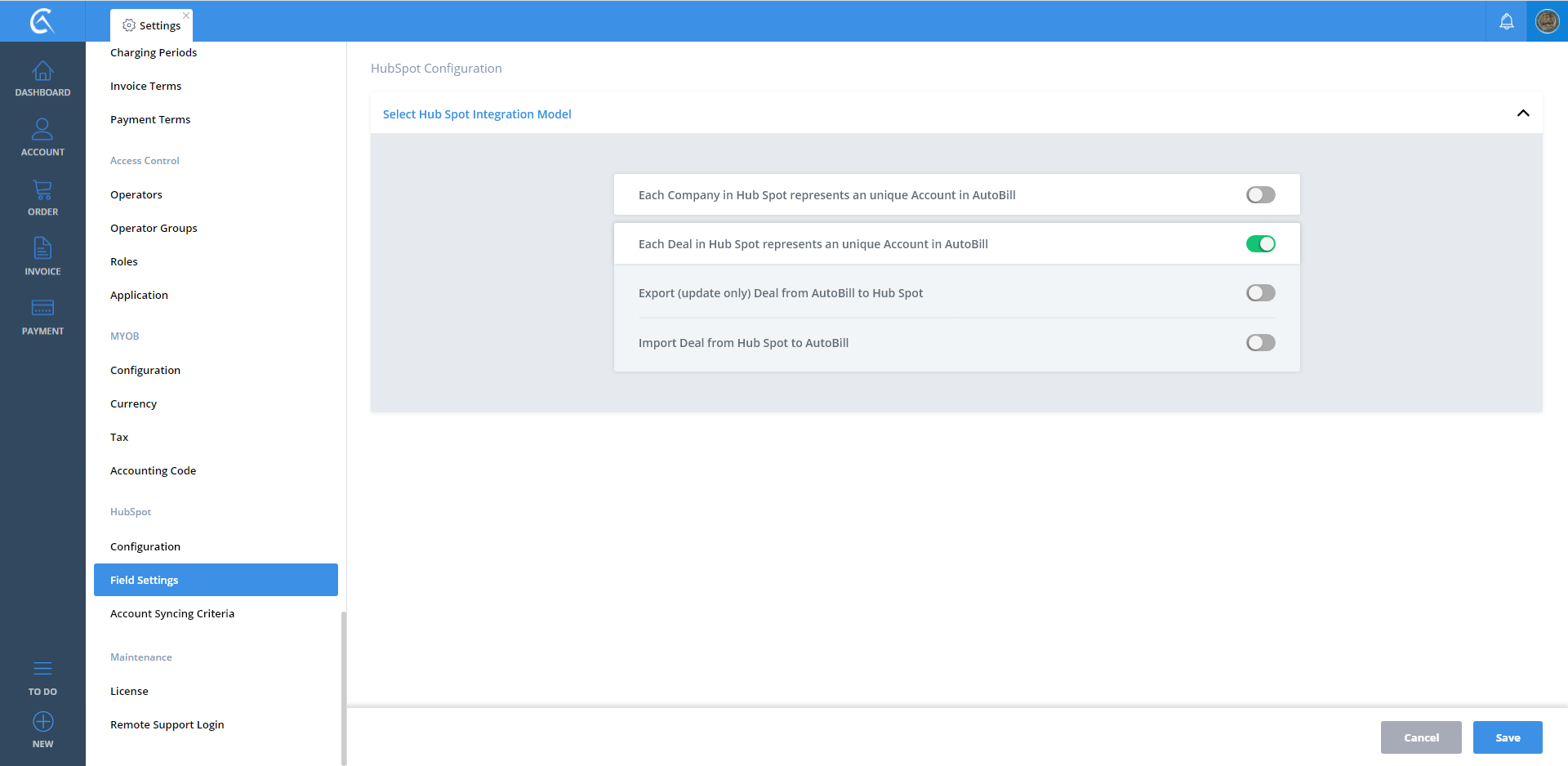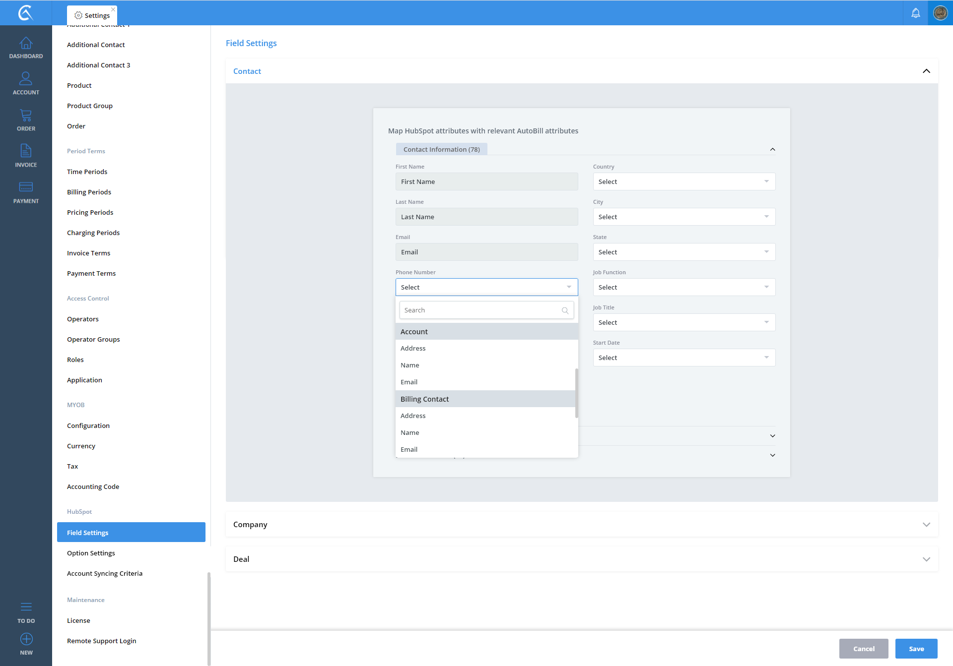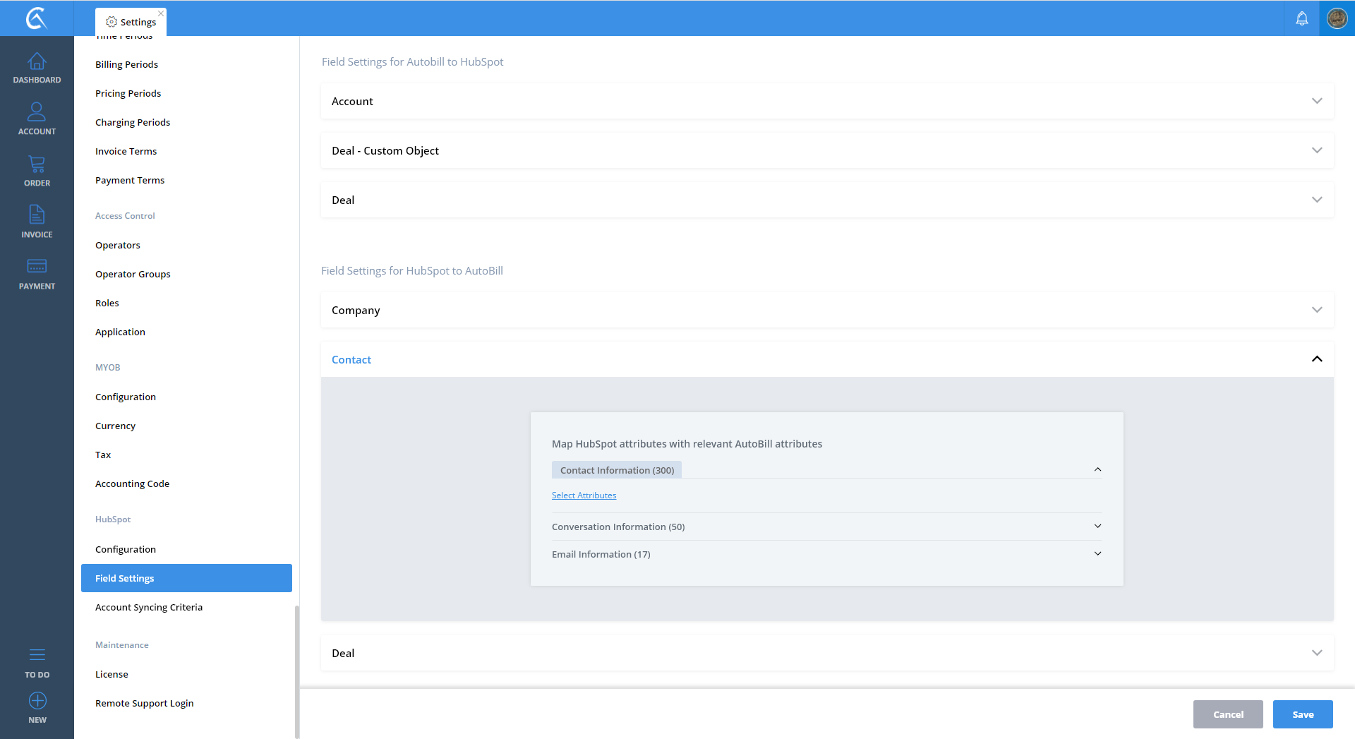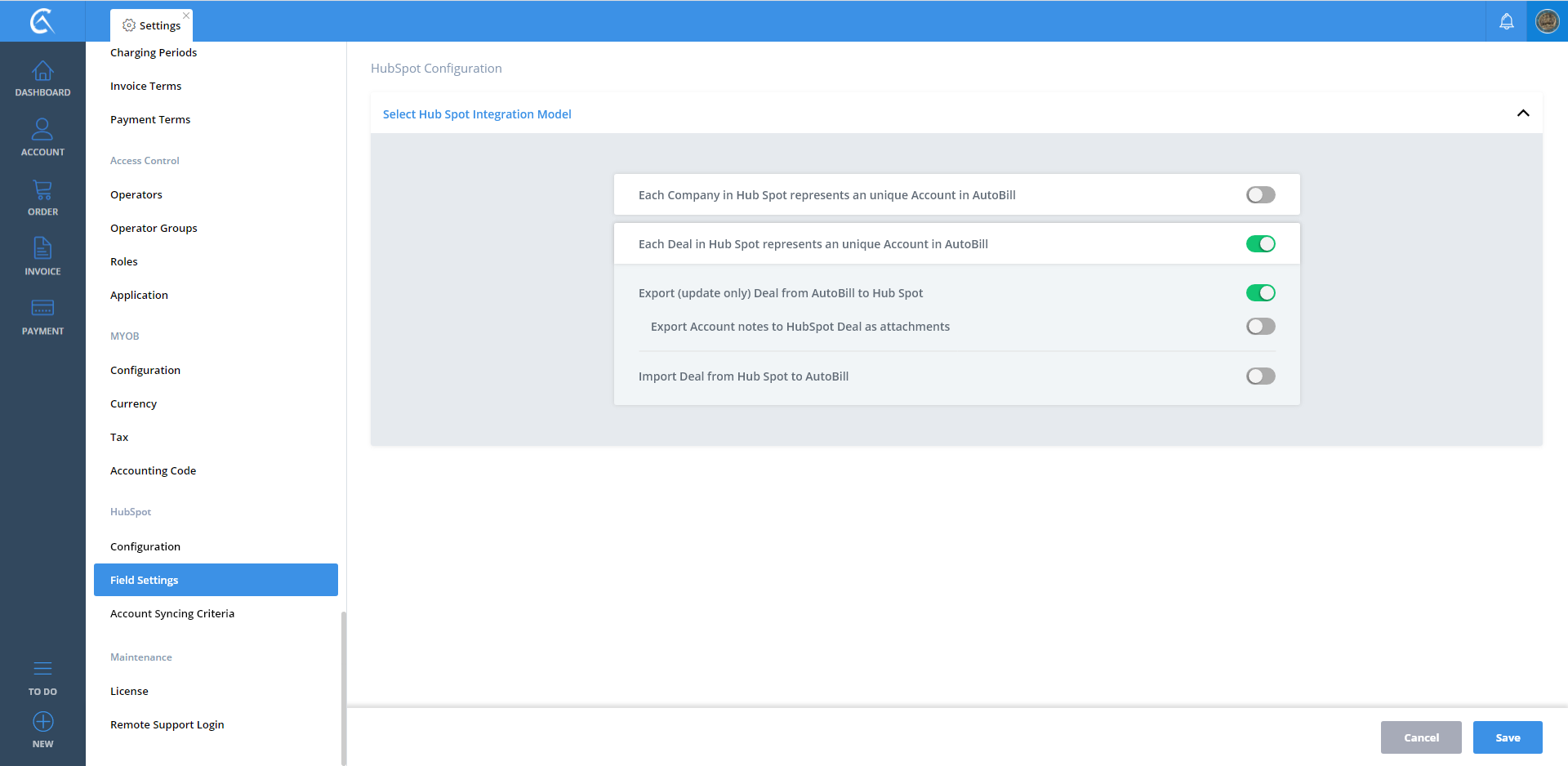 Field Settings AutoBill To Hubspot V3 Step 01