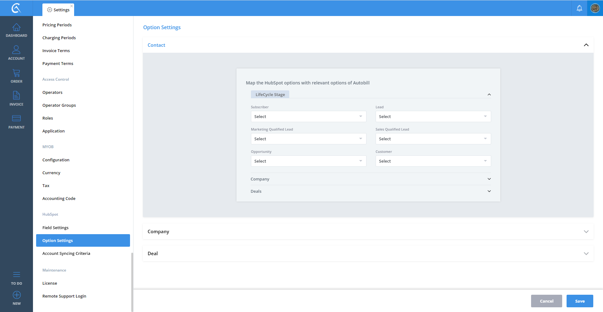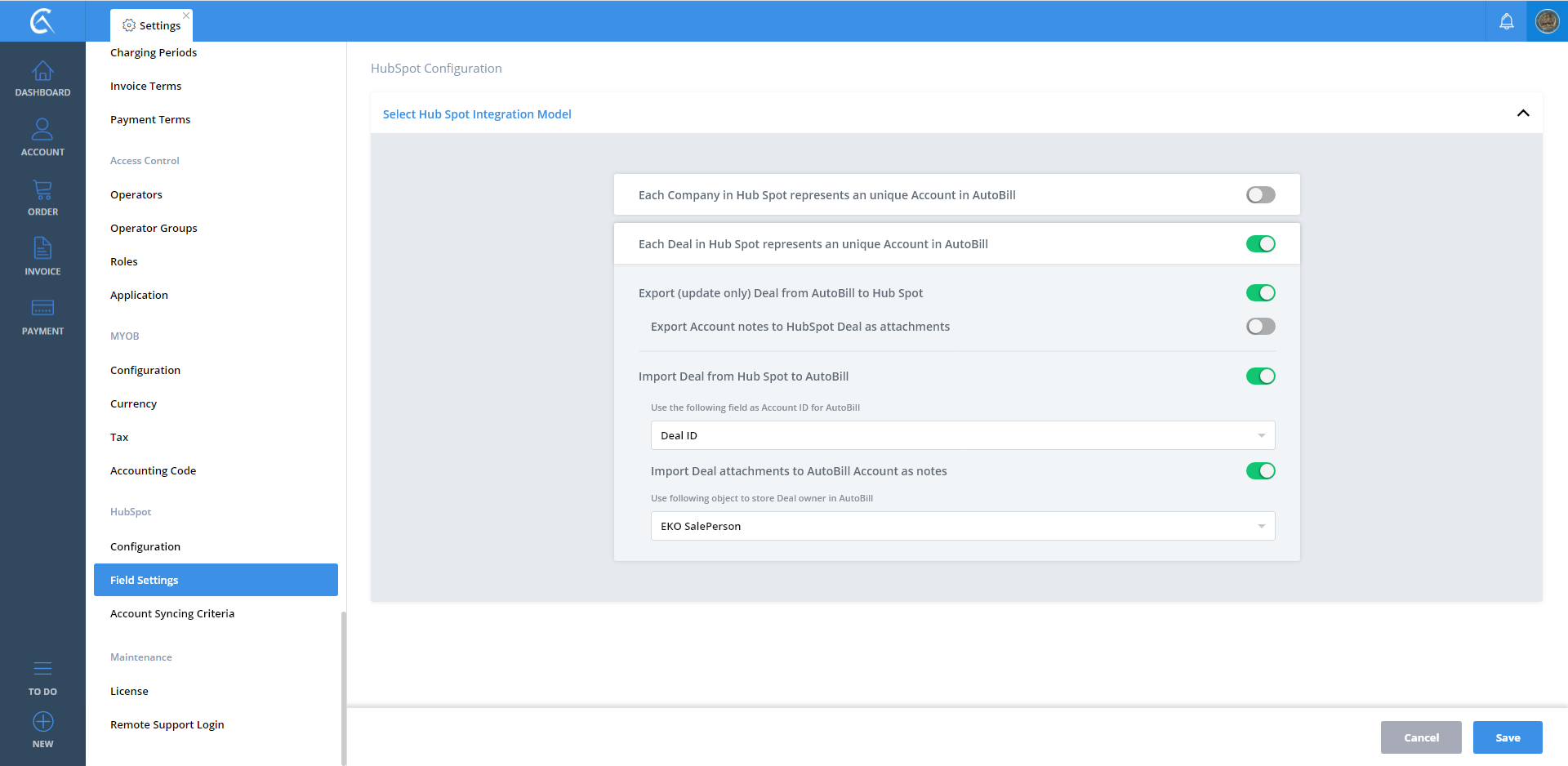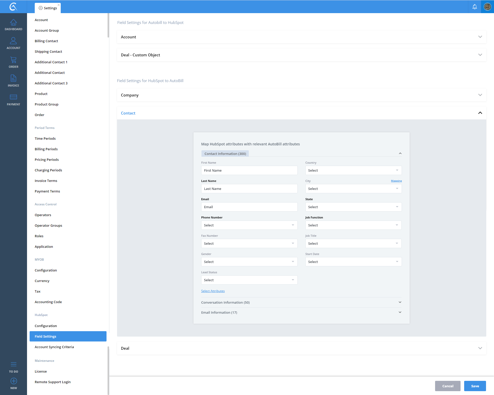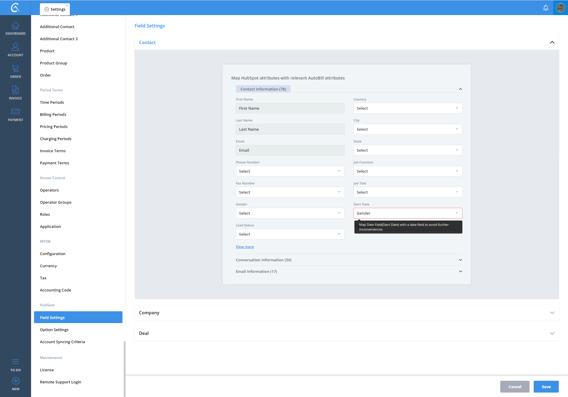 Field Settings AutoBill To Hubspot V3 Step 01