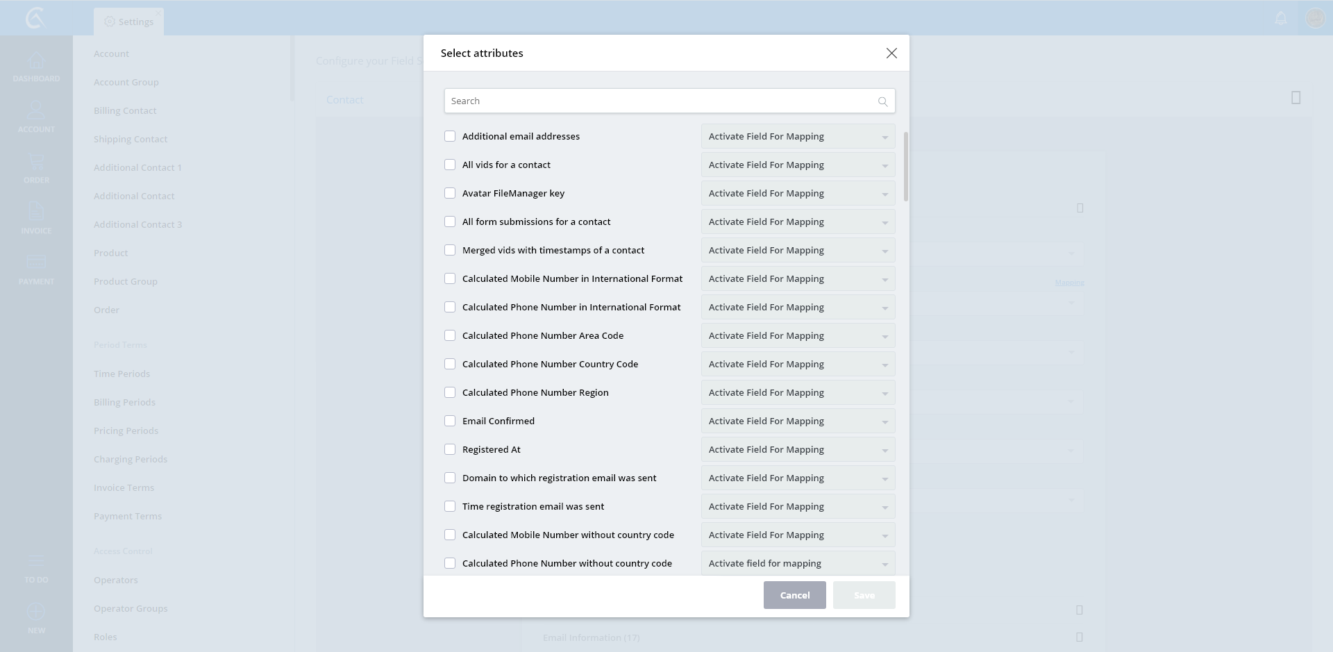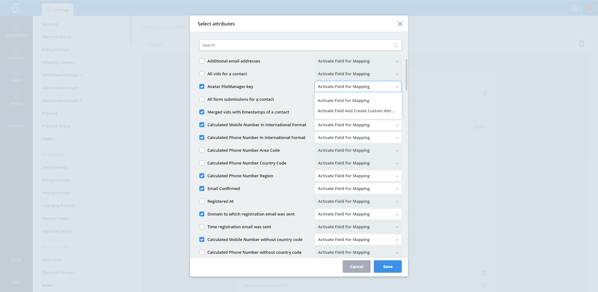 Field Settings Mapping Popup Dropdown