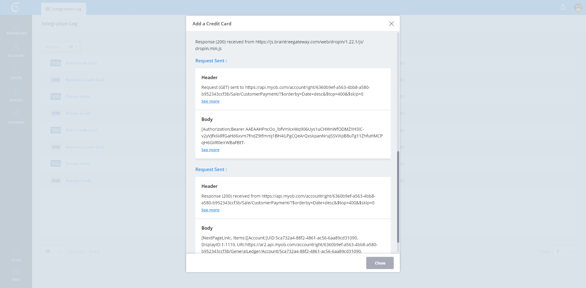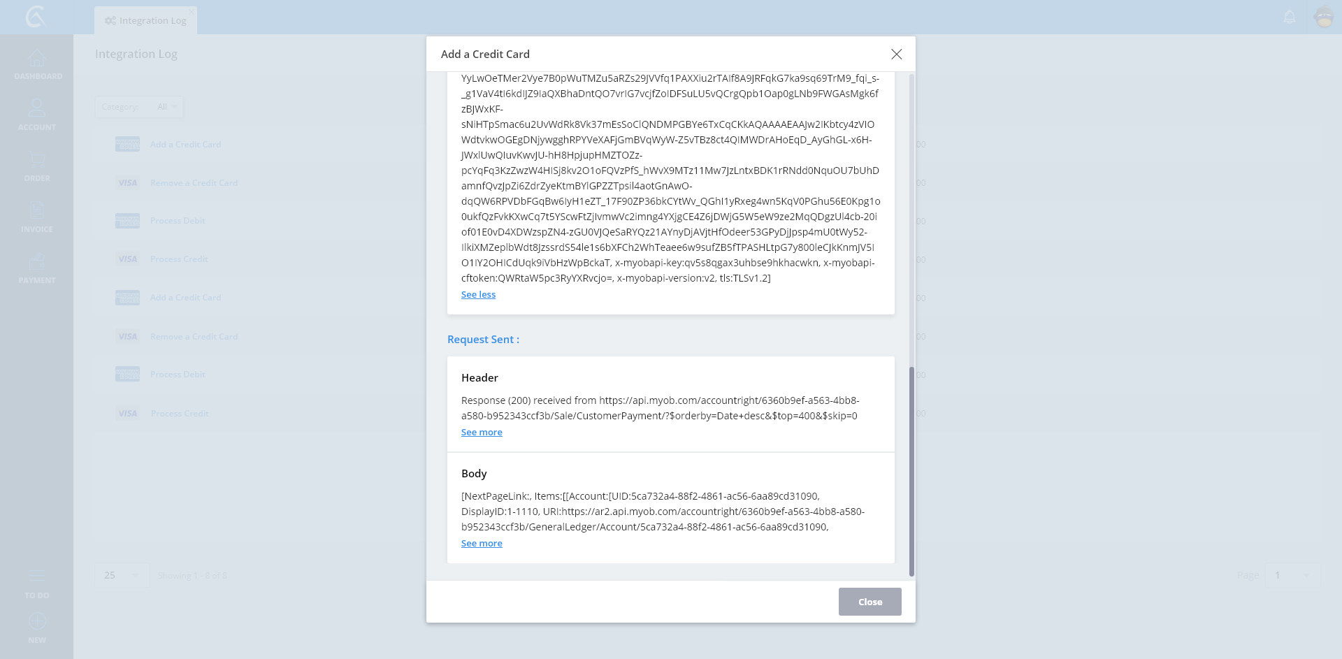 Integration Log Add A Credit Card Step 2