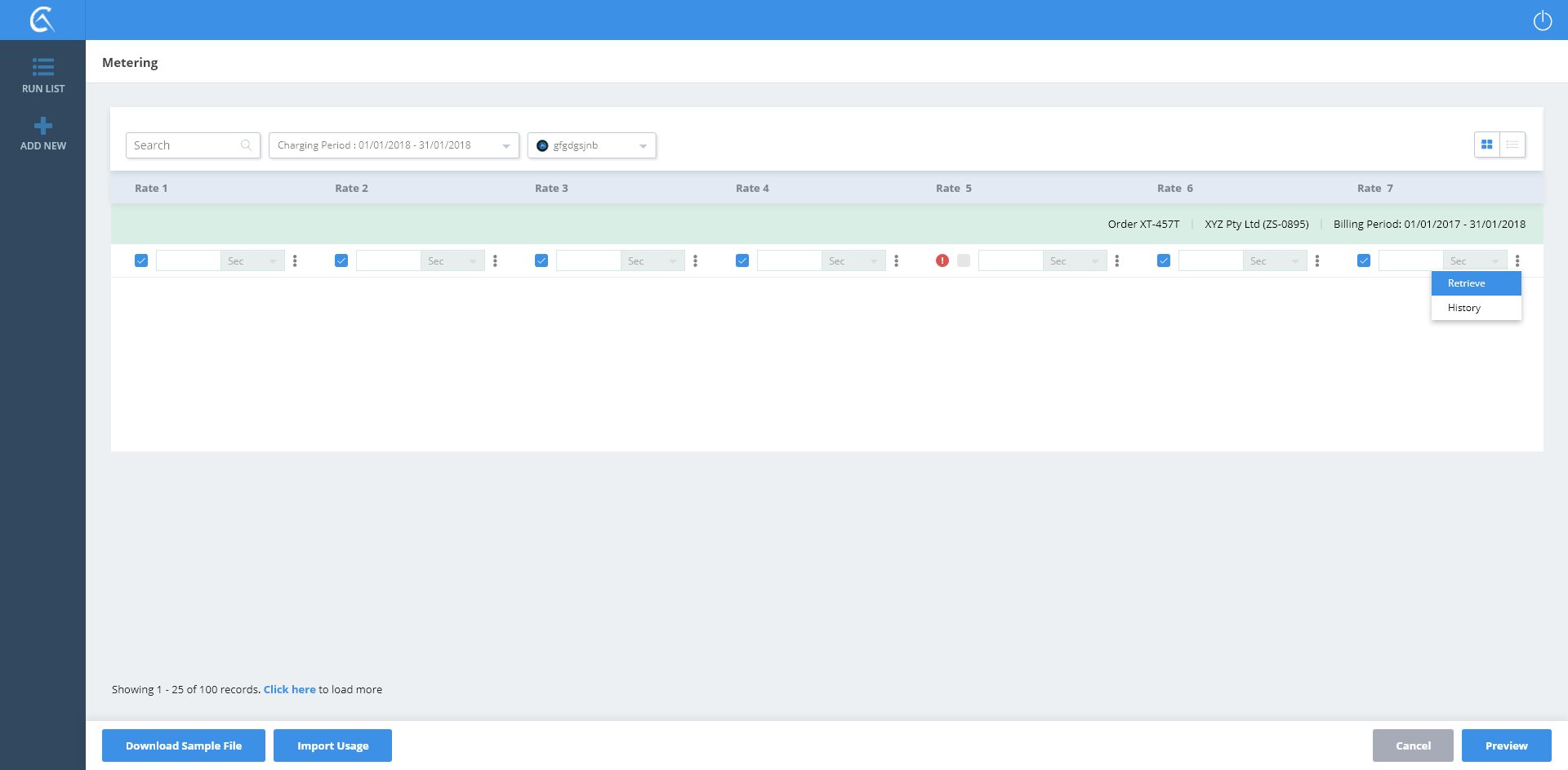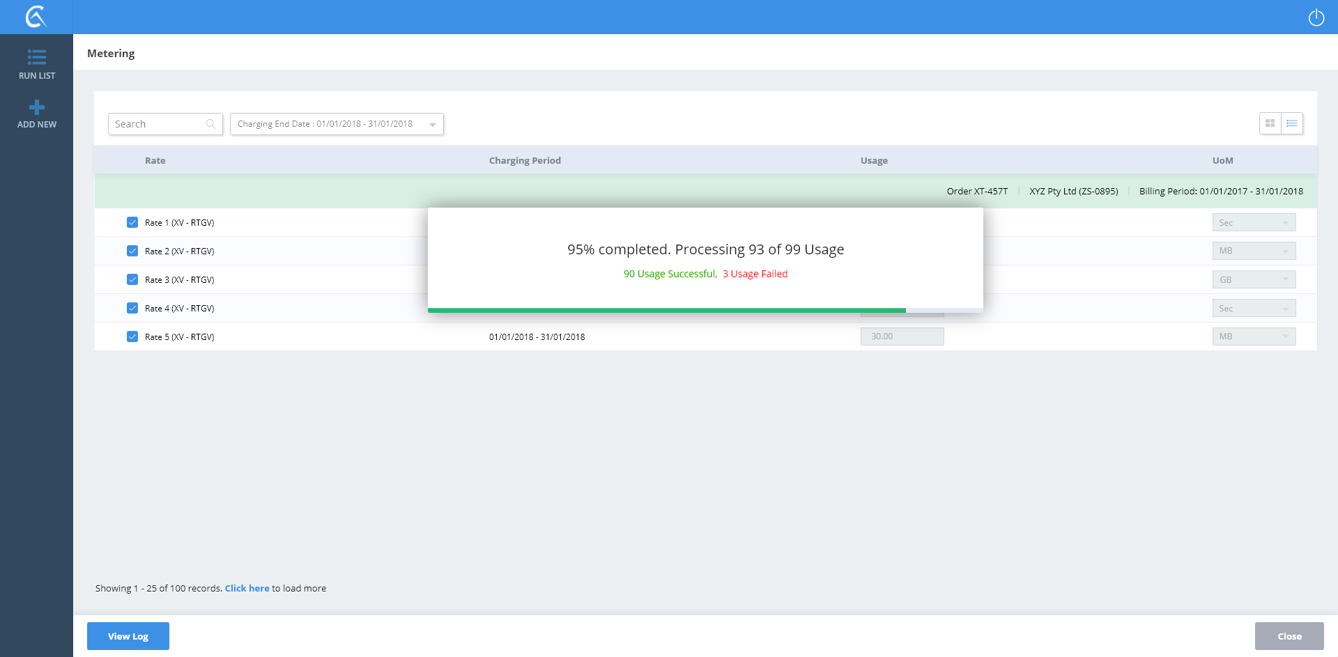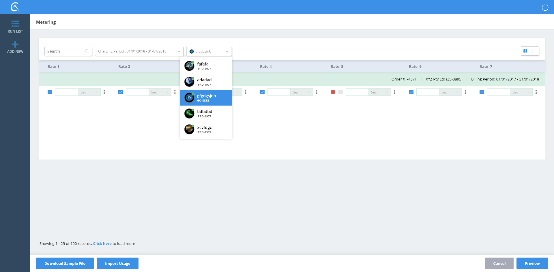 Metering List View