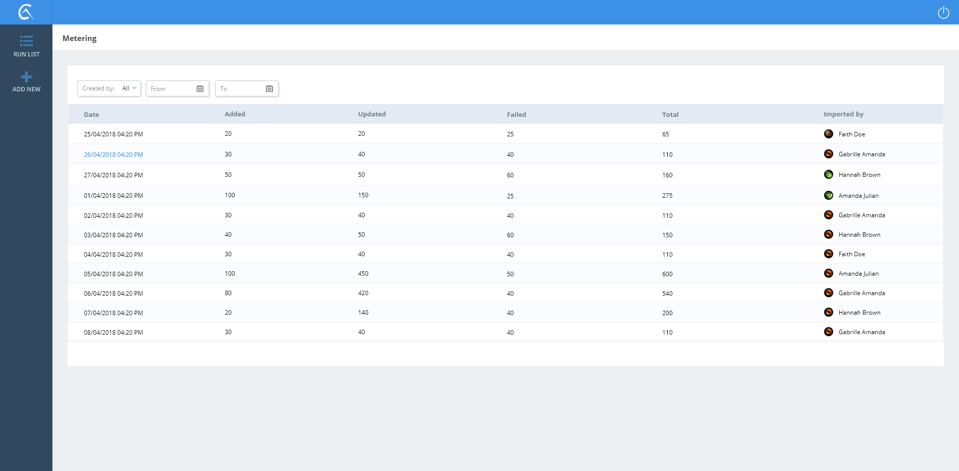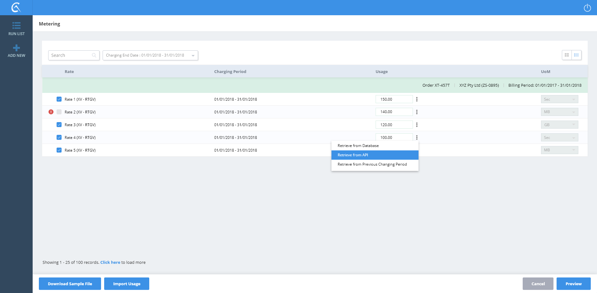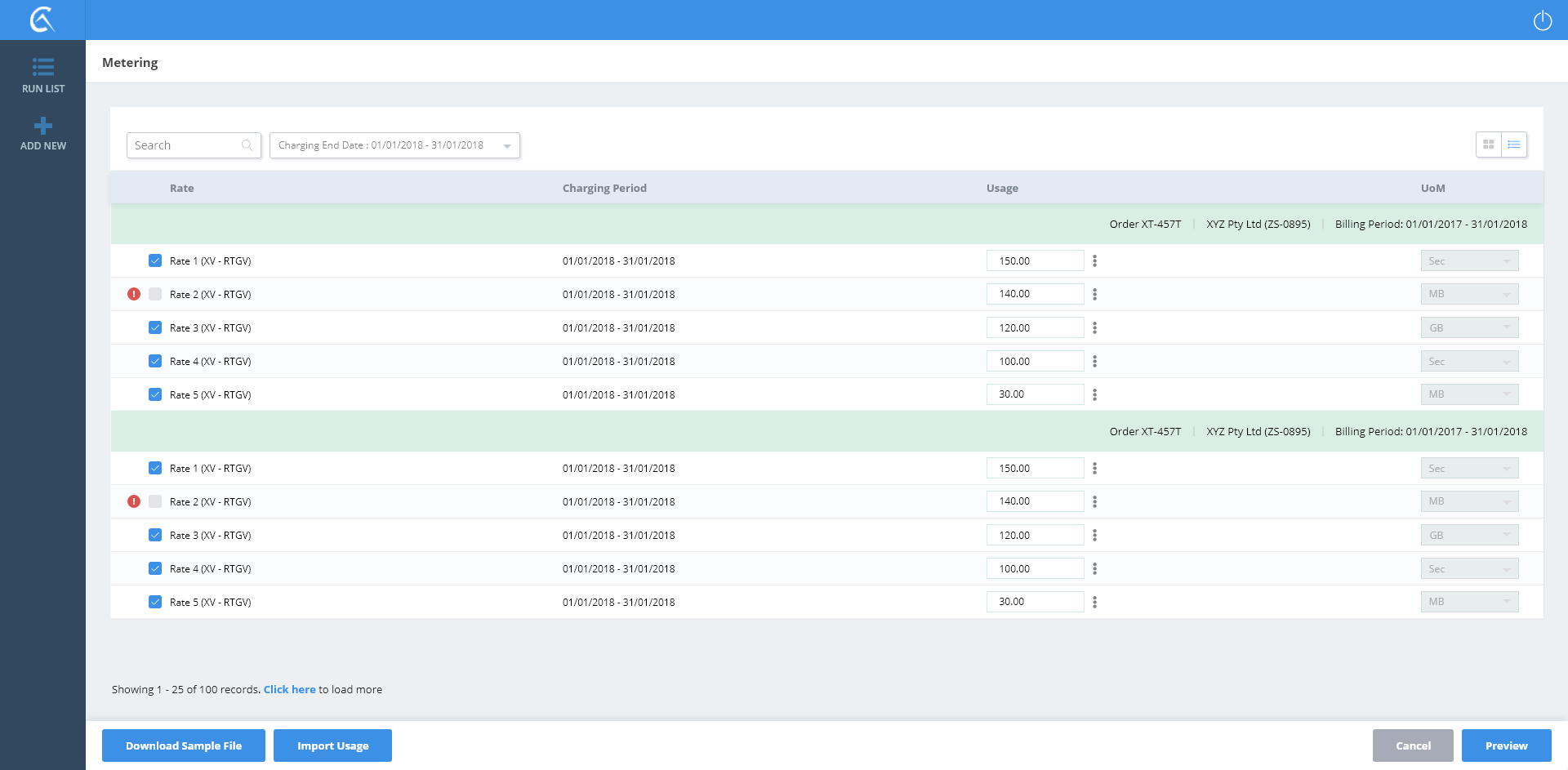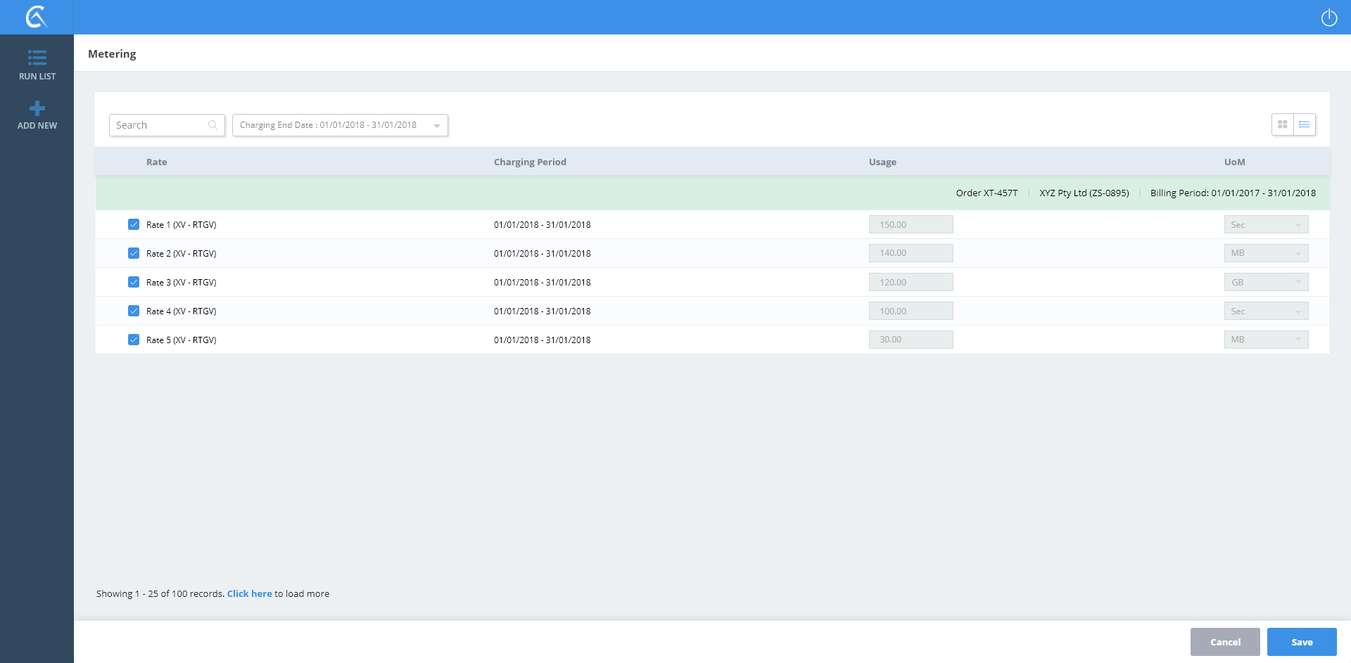 Metering List View