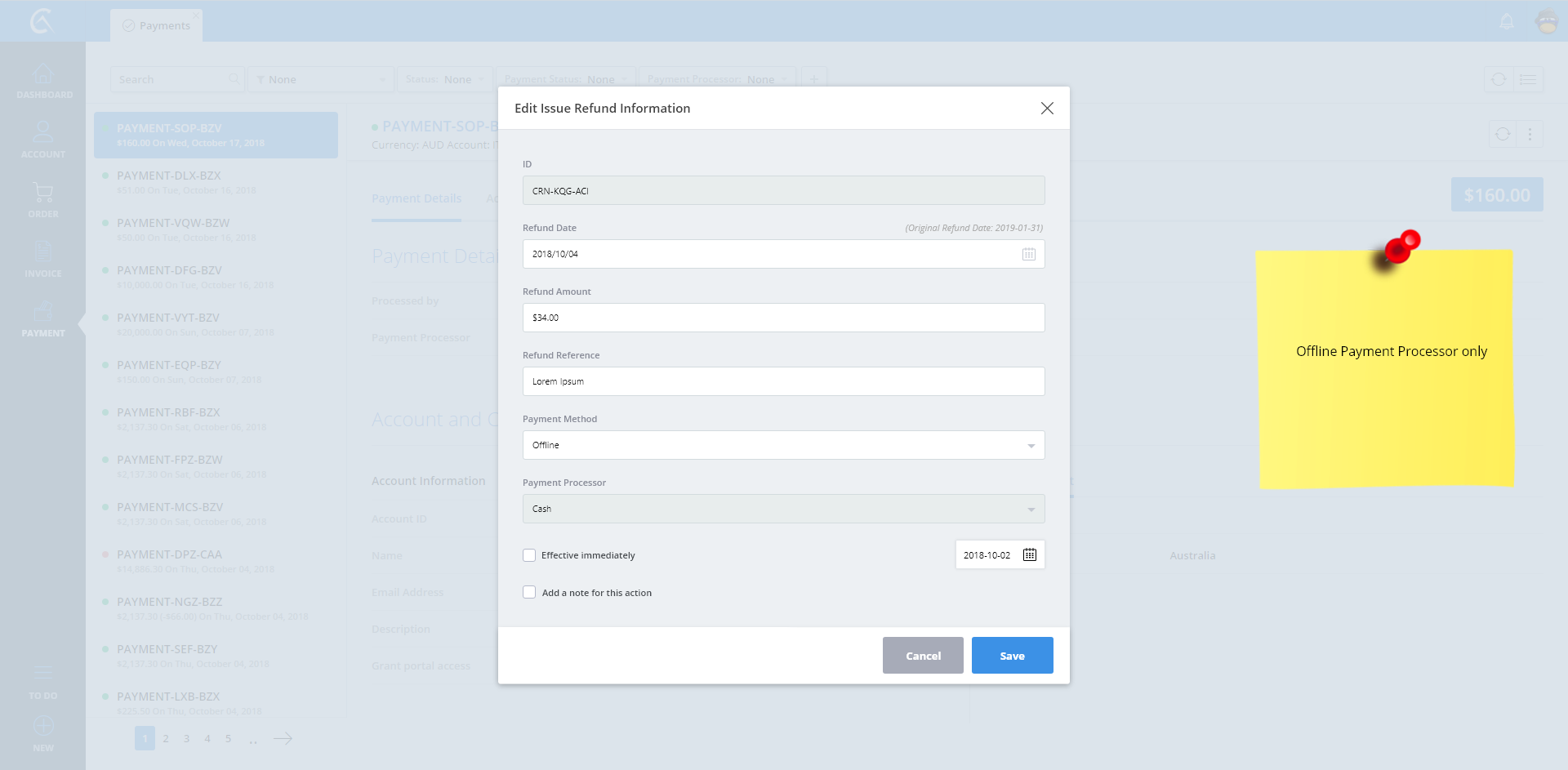 Edit Issue Refund Information