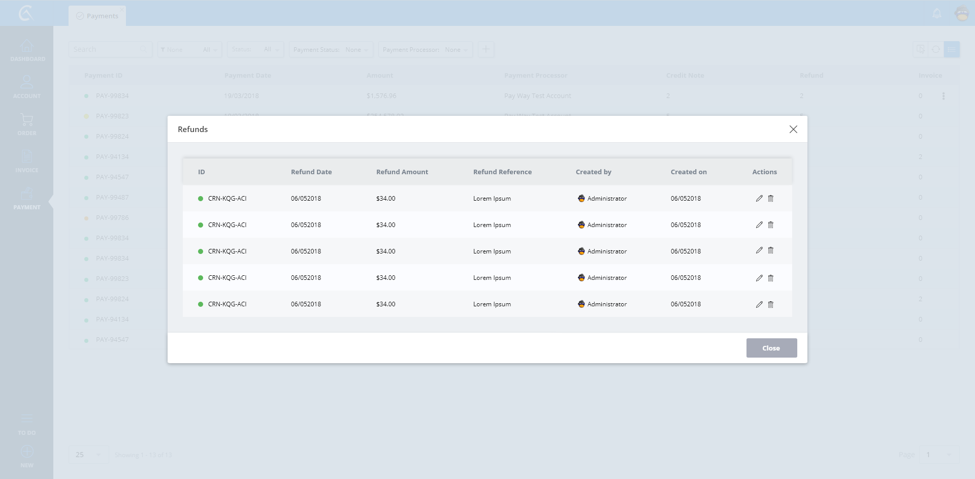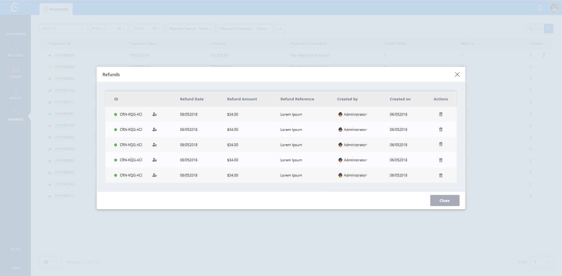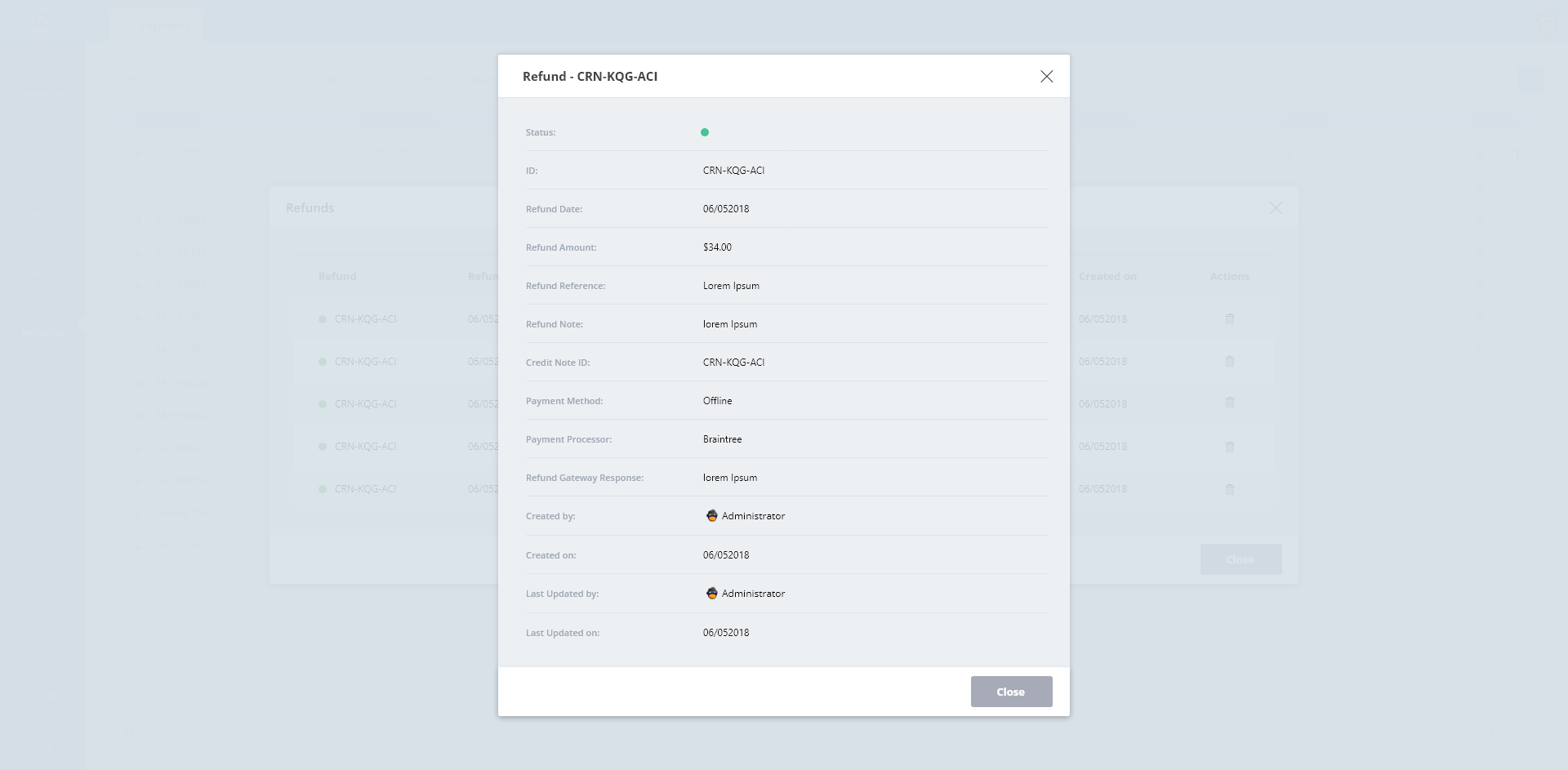 Refunds List Details