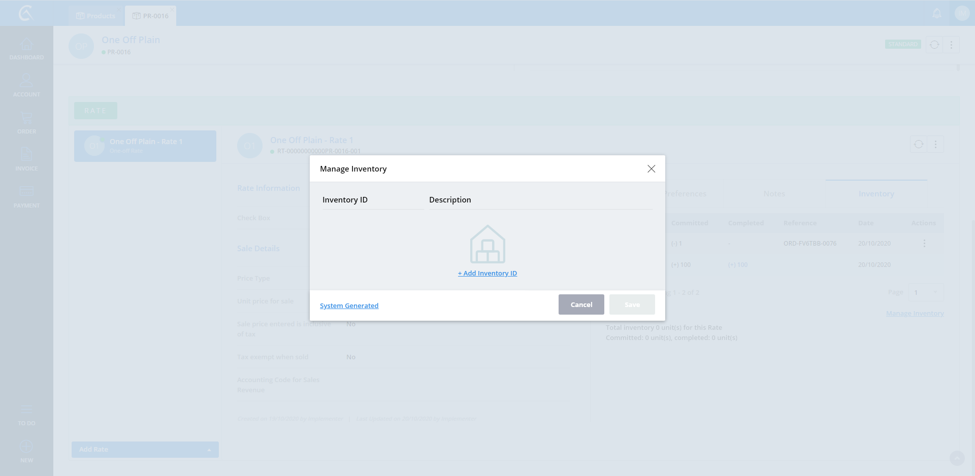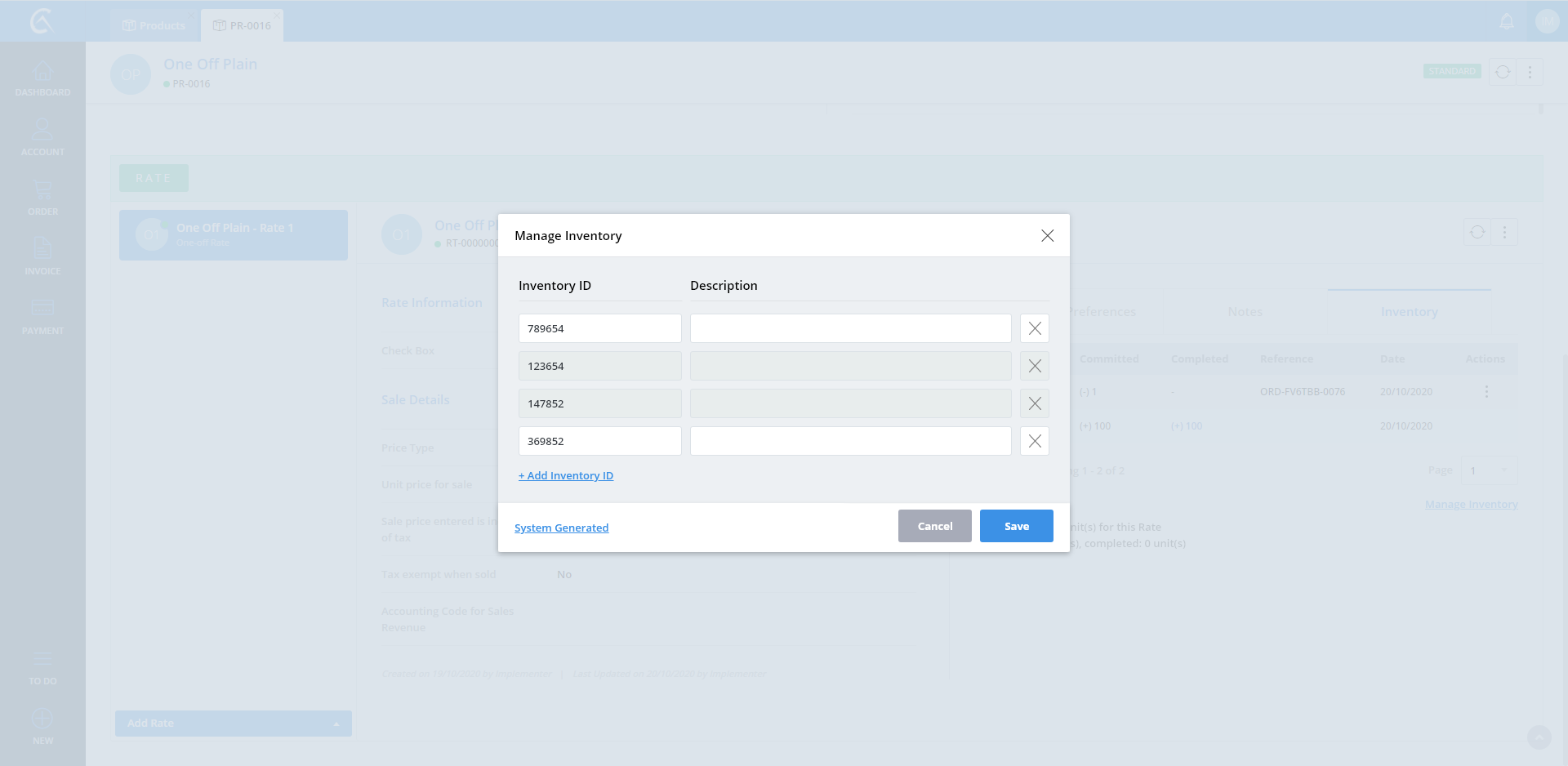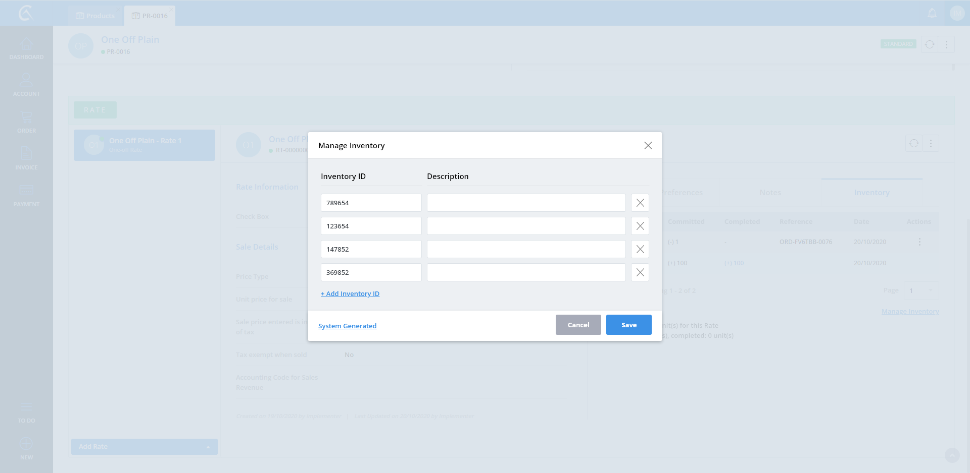 Manage Inventory No Id