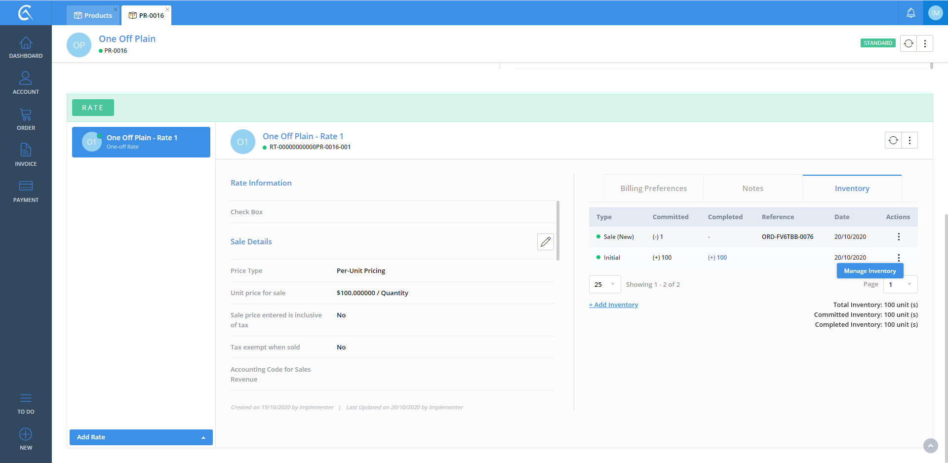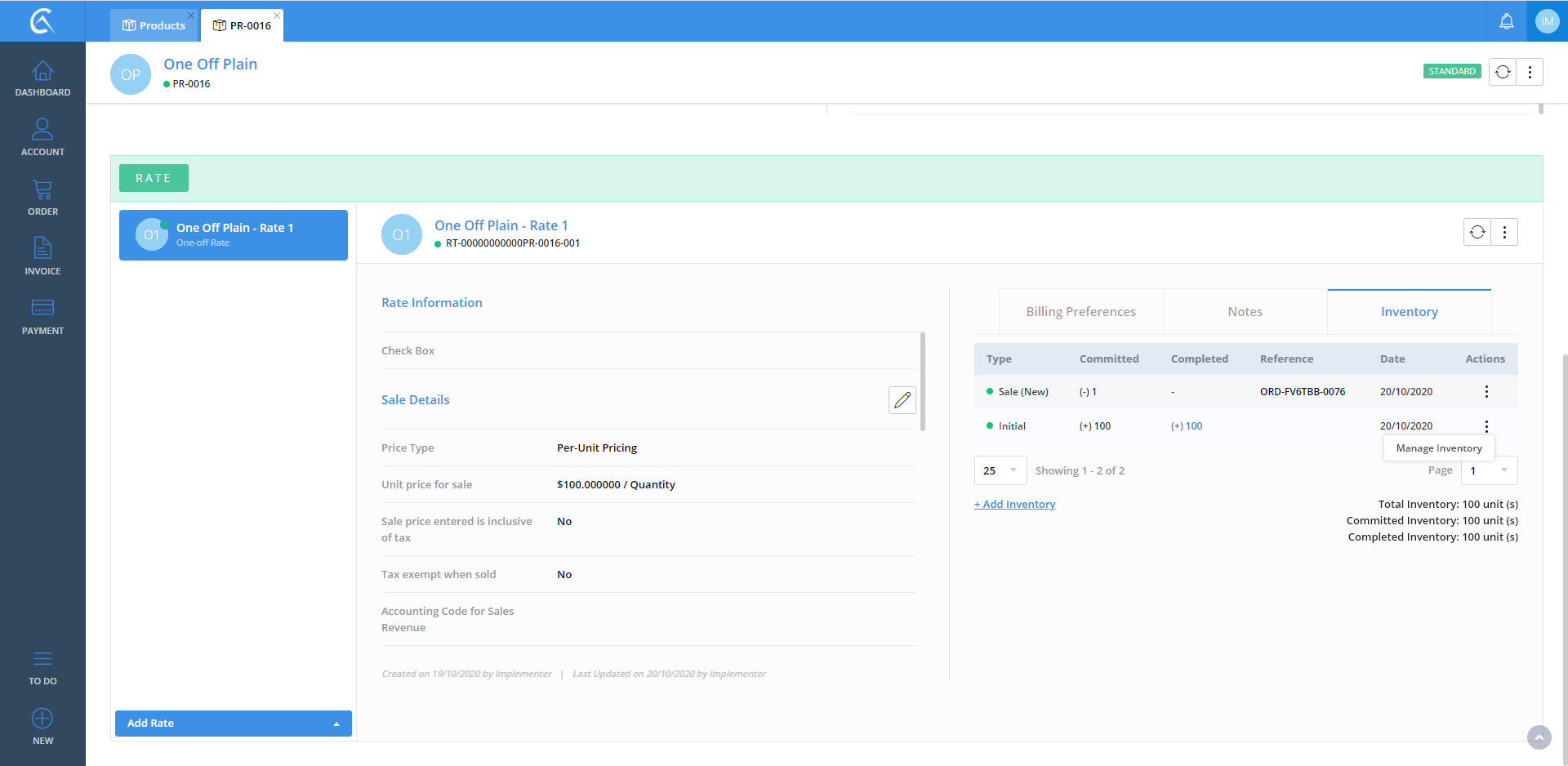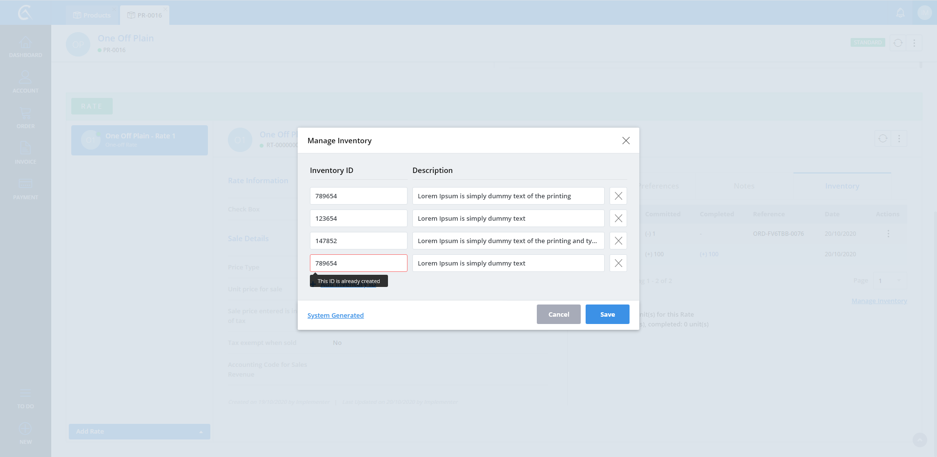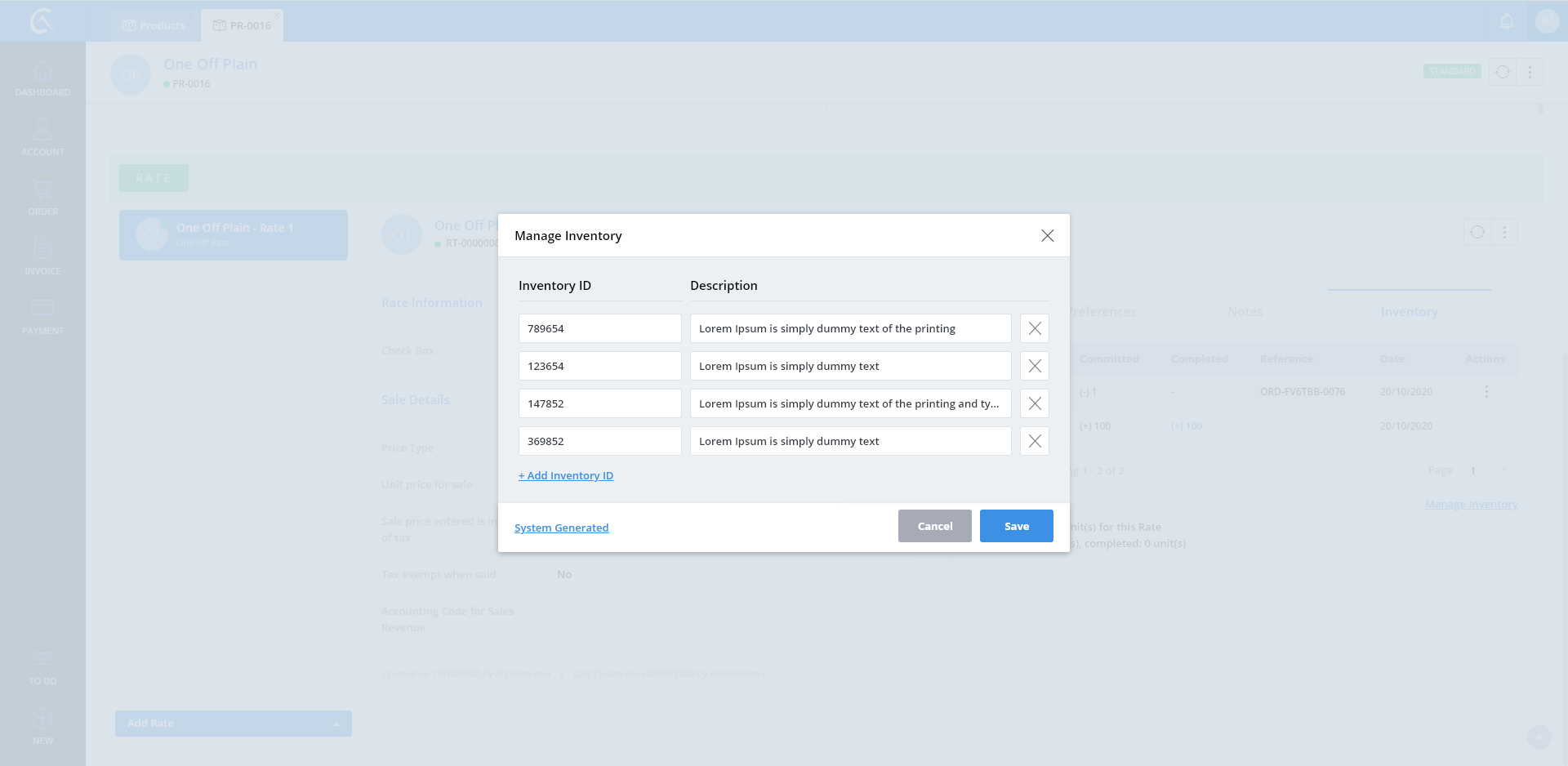 Manage Inventory No Id