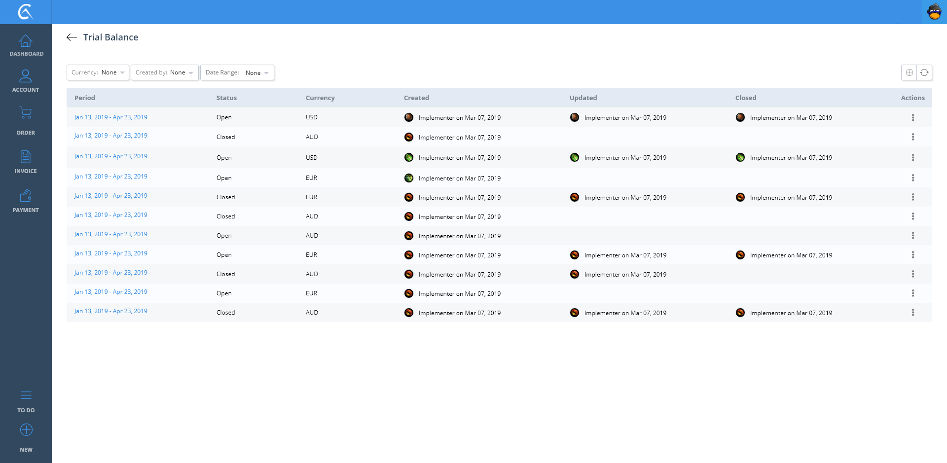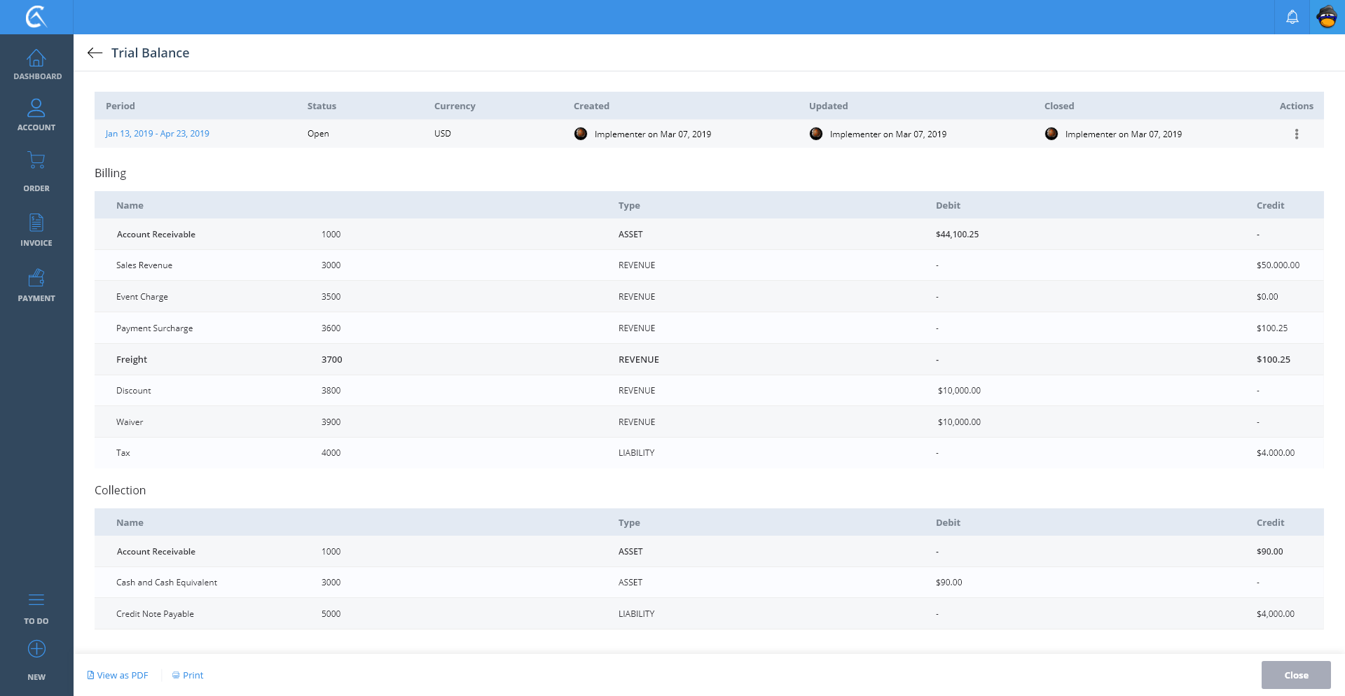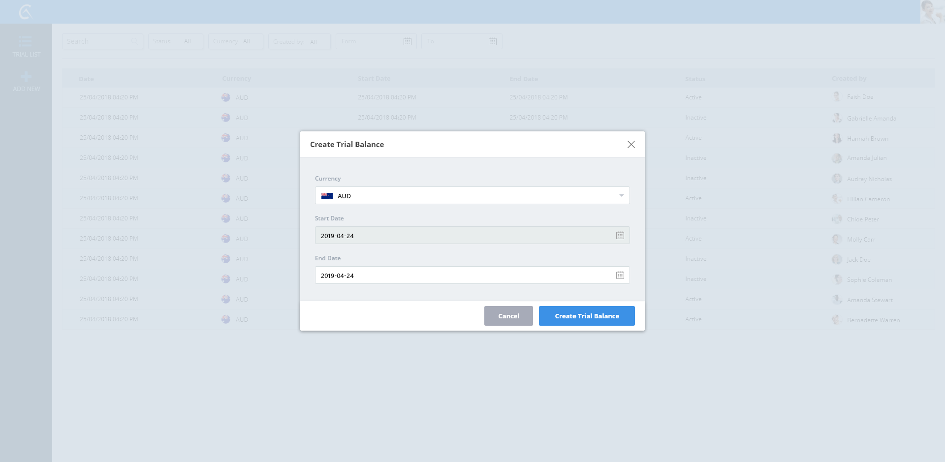 Trial Balance List View