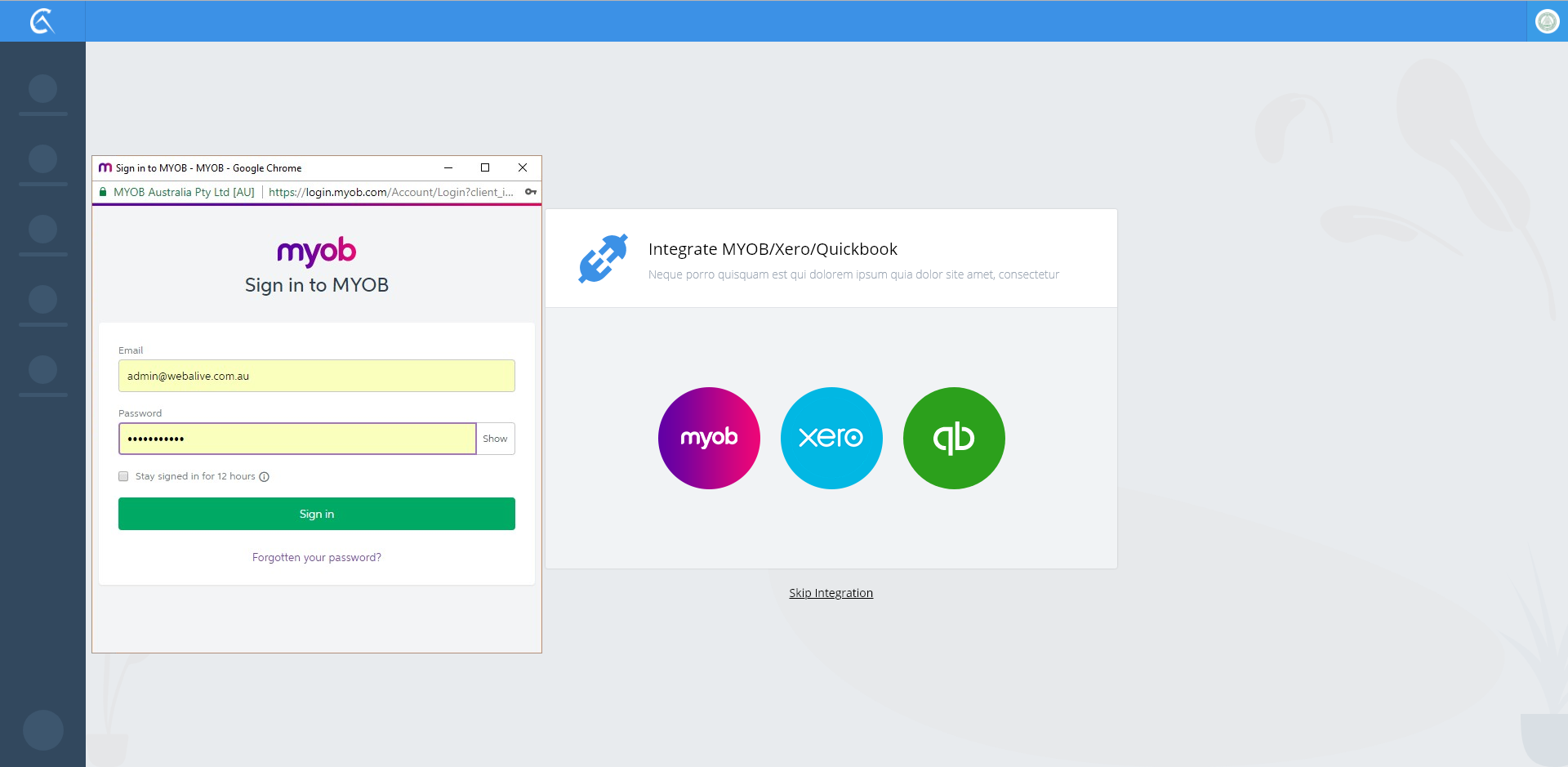 Step 1.1.3 myob Connecting Without Requires Login Save