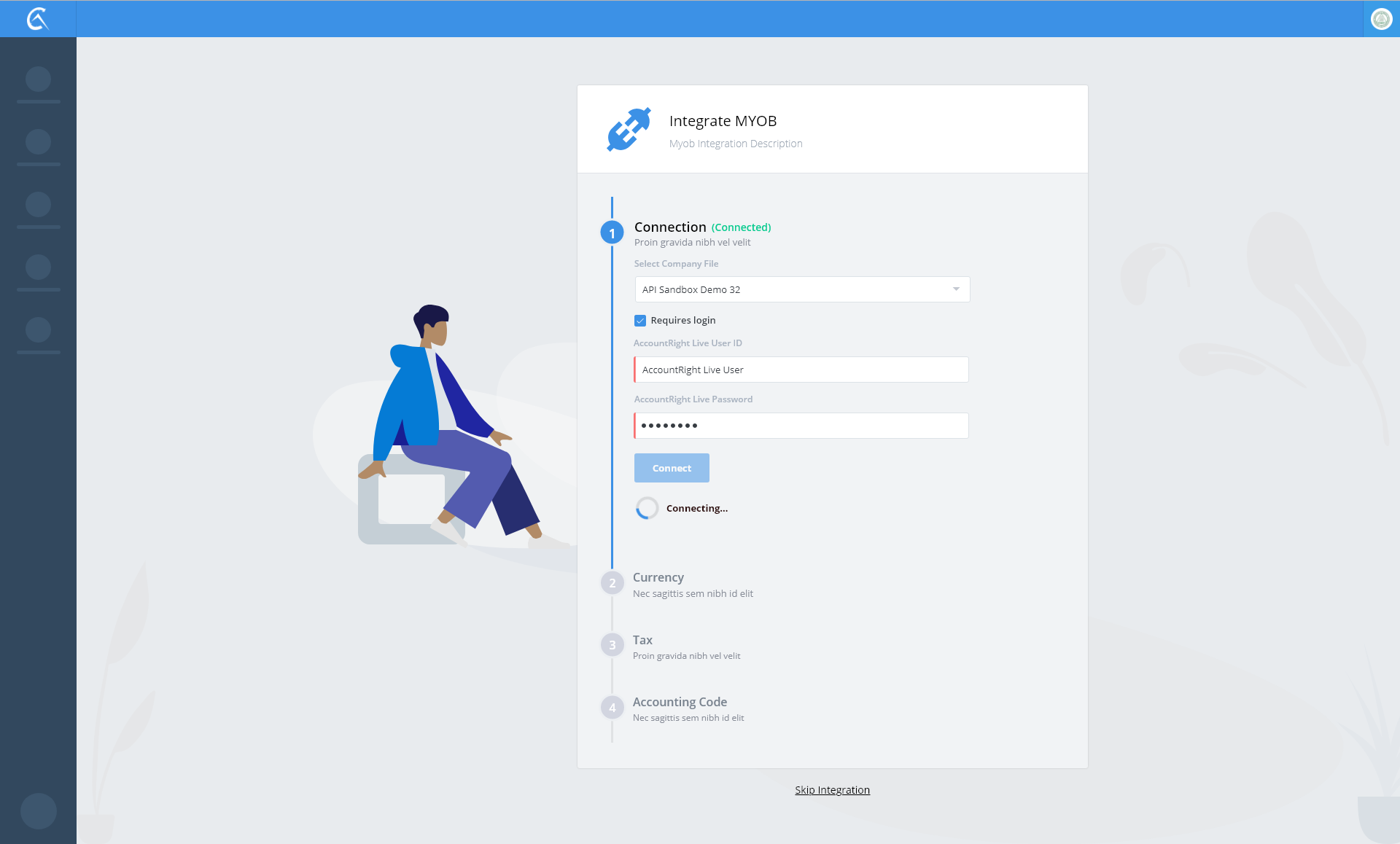 Step 1.1.1 myob Connected User Info