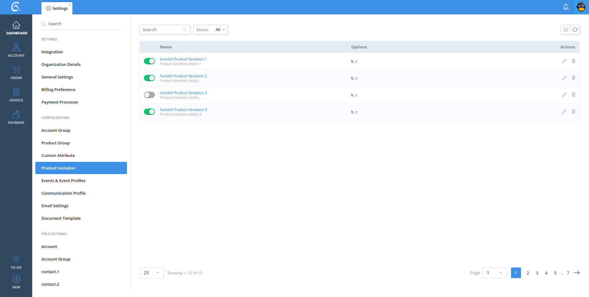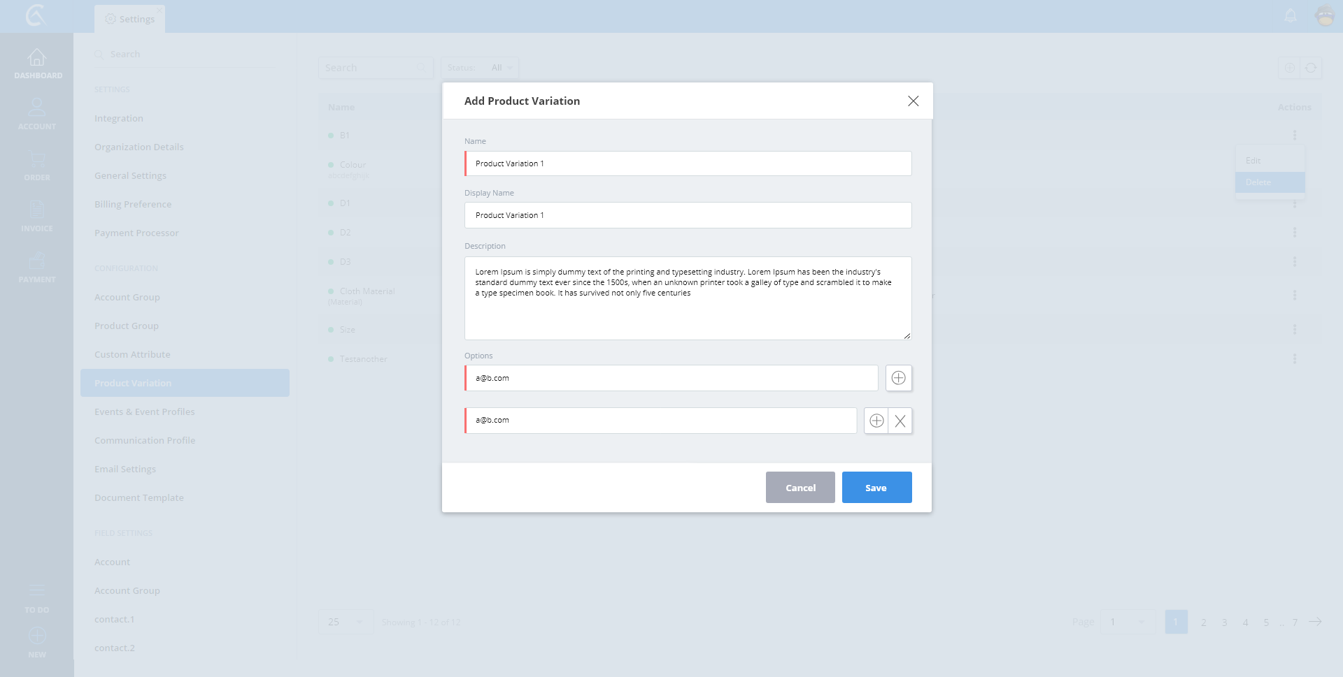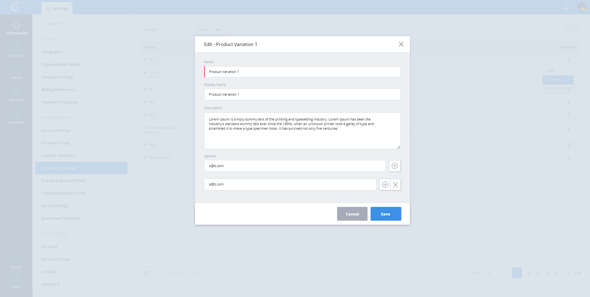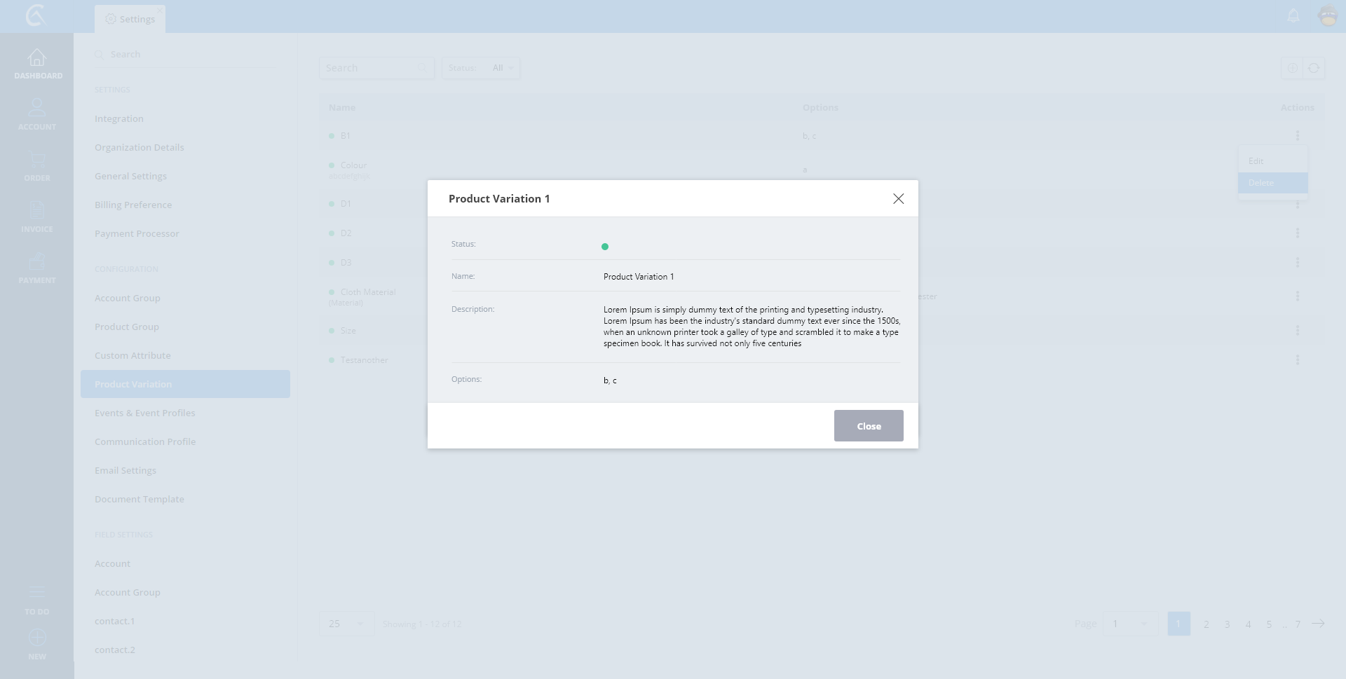 Product Variation - List View