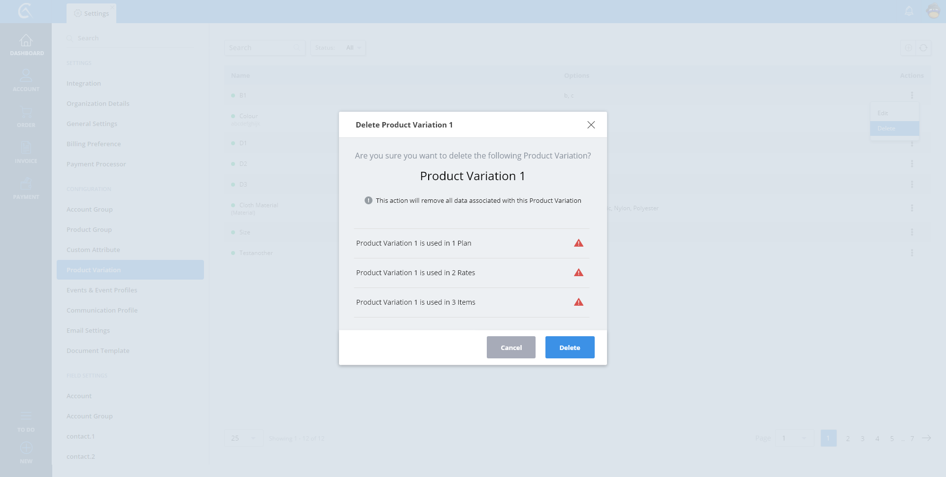 Delete Product Variation - With Association