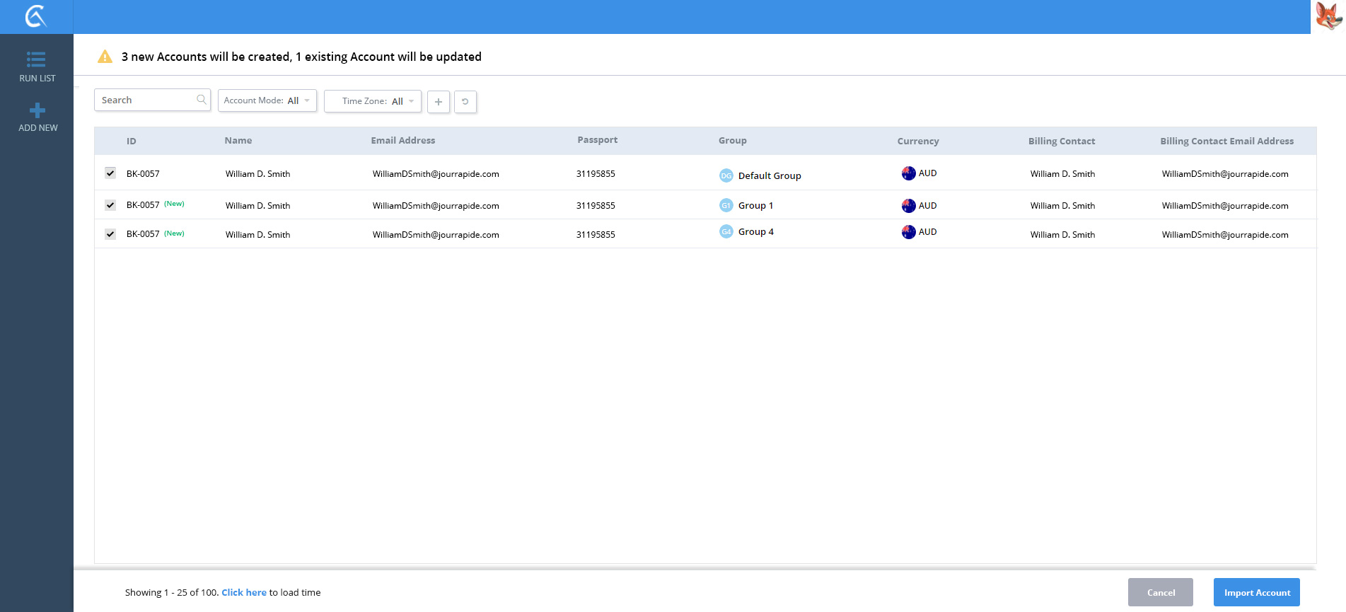 account step 1