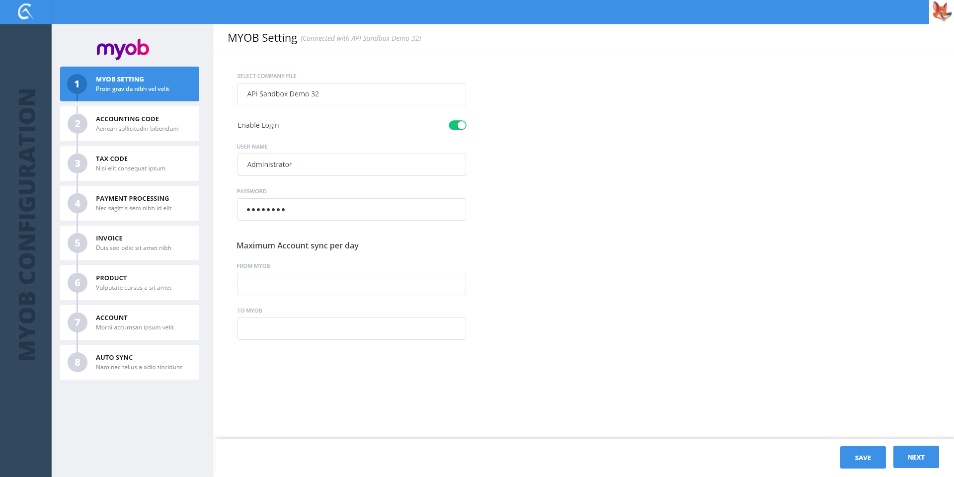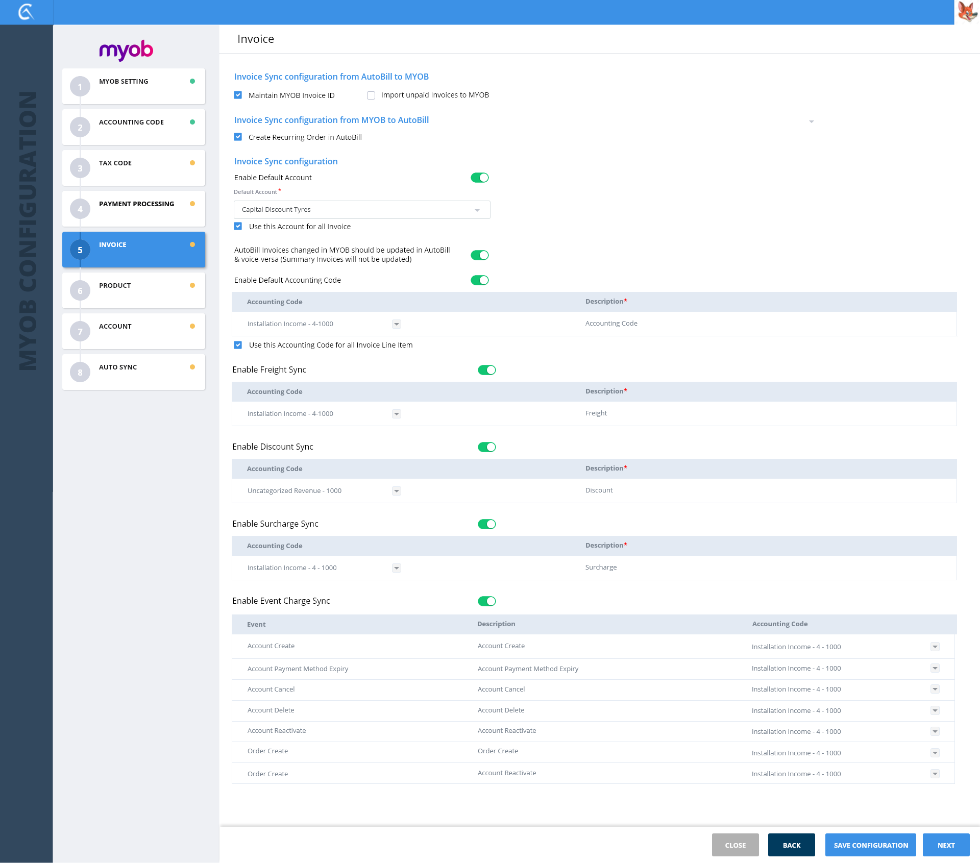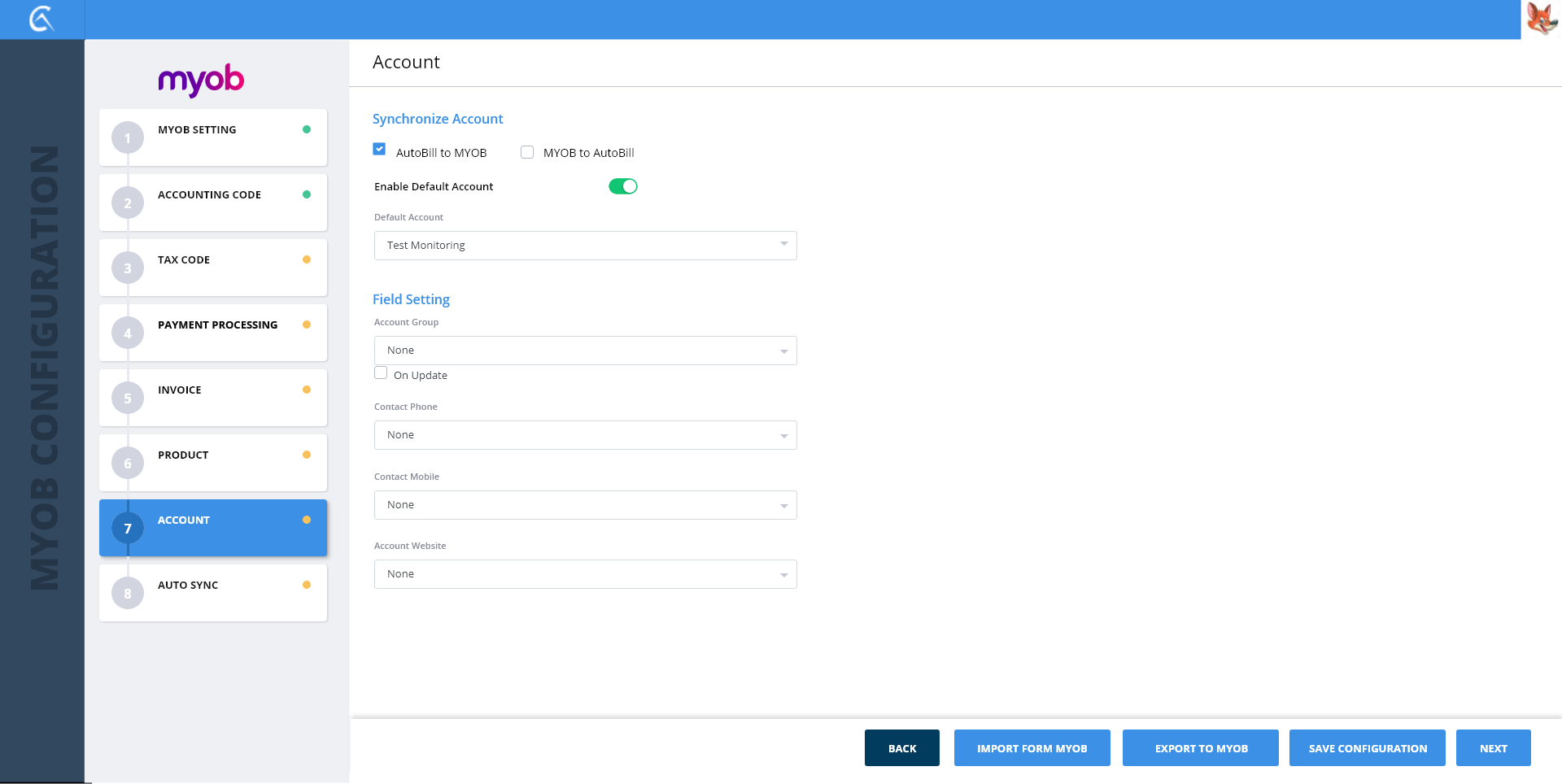 1-MYOB Settings