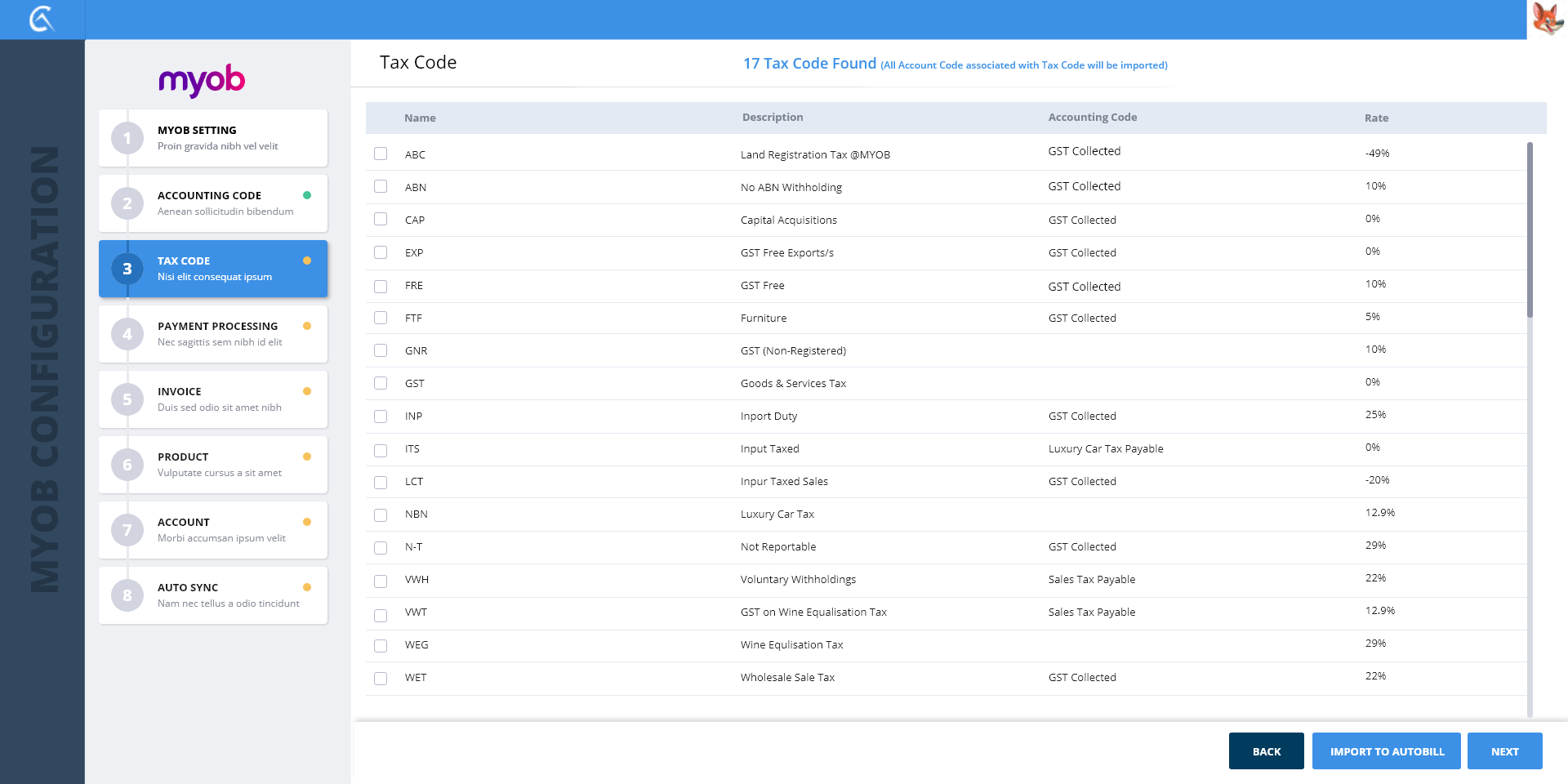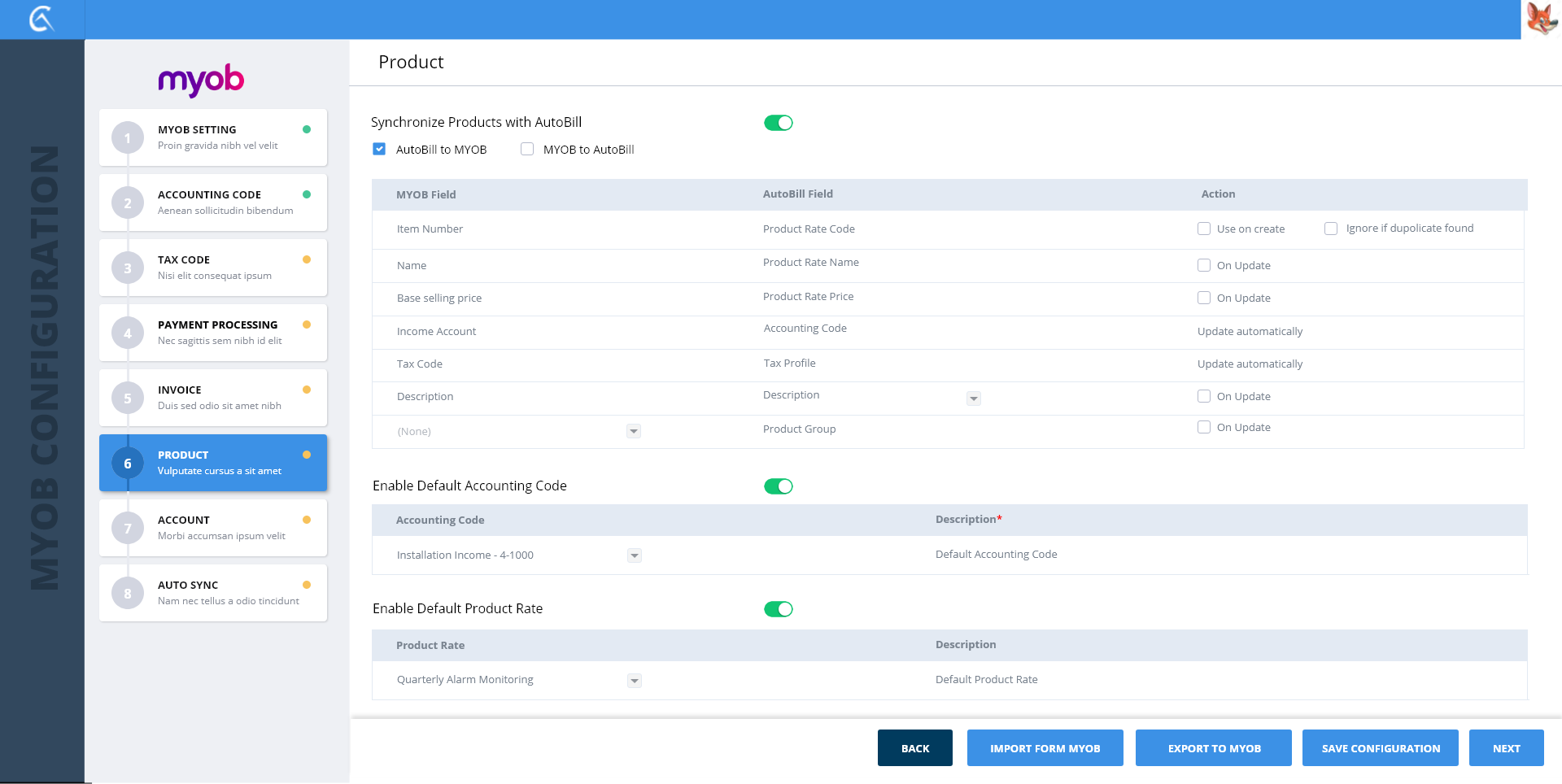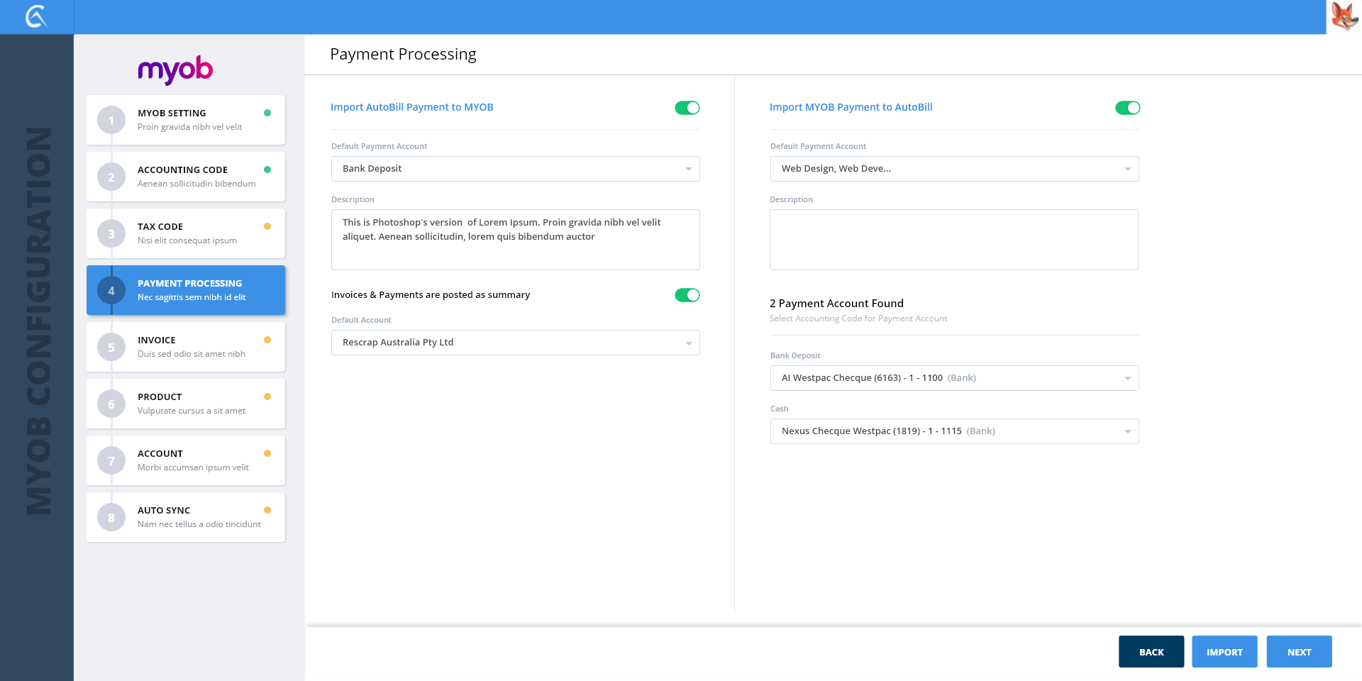 1-MYOB Settings